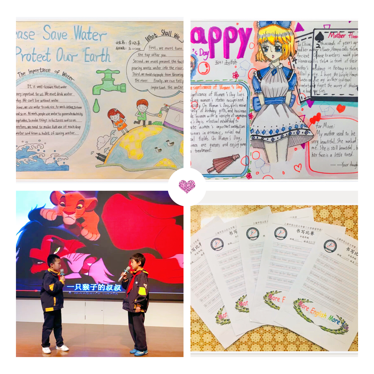 大华二小为期一个月的校园英语节活动闭幕了。本届英语节我们为学生设计了形式多样、内容丰富多彩的英语活动:有全校性的英语书写比赛、三年级英语趣配音比赛、四年级英语阅读比赛、五年级英语小报比赛。目的在于突出学生的参与意识,力求做到人人参与,人人快乐,人人有收获。让英语节成为每一个孩子的节日;让每一个孩子在这种轻松愉快的活动中感受英语,应用英语,享受英语;让每个孩子在活动中找到自信;让英语走进每个孩子,使他们想说,敢说,能说,乐说。在英语节期间,孩子们热情高涨,积极参与,涌现出了很多英语小达人。