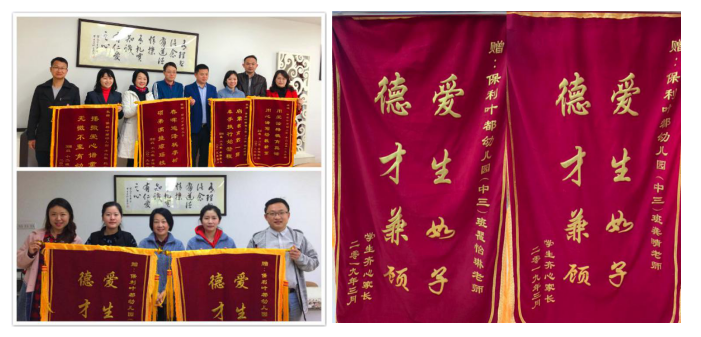 保利叶都幼儿园自2014年开园以来,已经先后收到锦旗40余面,表扬信100多封。老师们辛勤的工作能够得到家长的认可,这是对我们幼教工作的最大肯定。全园教师会坚定地把幼儿家长对老师的理解与支持化作继续前进的动力,力争做到让幼儿开心,以更高的工作热情和责任心回报社会。
