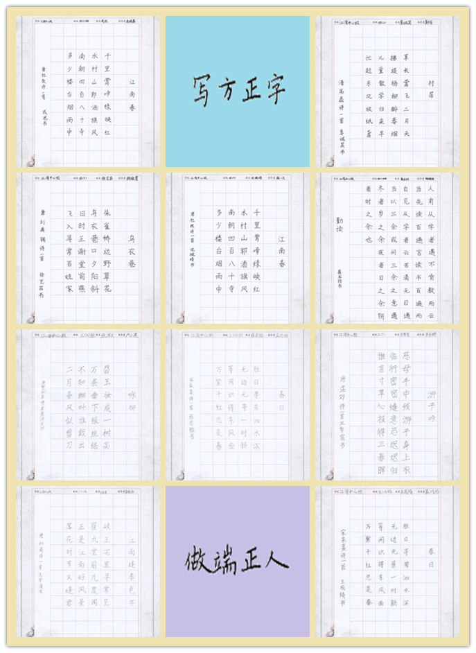 日前,为进一步引导学生书写规范汉字,增强对祖国语言文字和中华传统文化的认同与热爱之情,江湾中心校响应上级部门的活动号召,由德育室组织发动实施,语言文字干部负责作品评选,开展了三、四年级的“书写中华经典,传承民族文化”规范化汉字书写比赛活动。