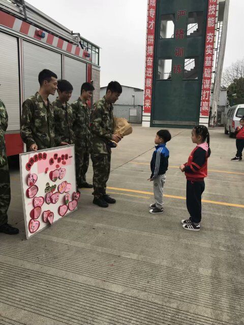 活动结束的时候,为了表达对消防员叔叔的崇敬,孩子们还开展了献花仪式,孩子们把一句句暖心的话语送给了消防员叔叔,消防员叔叔们开心的笑了!