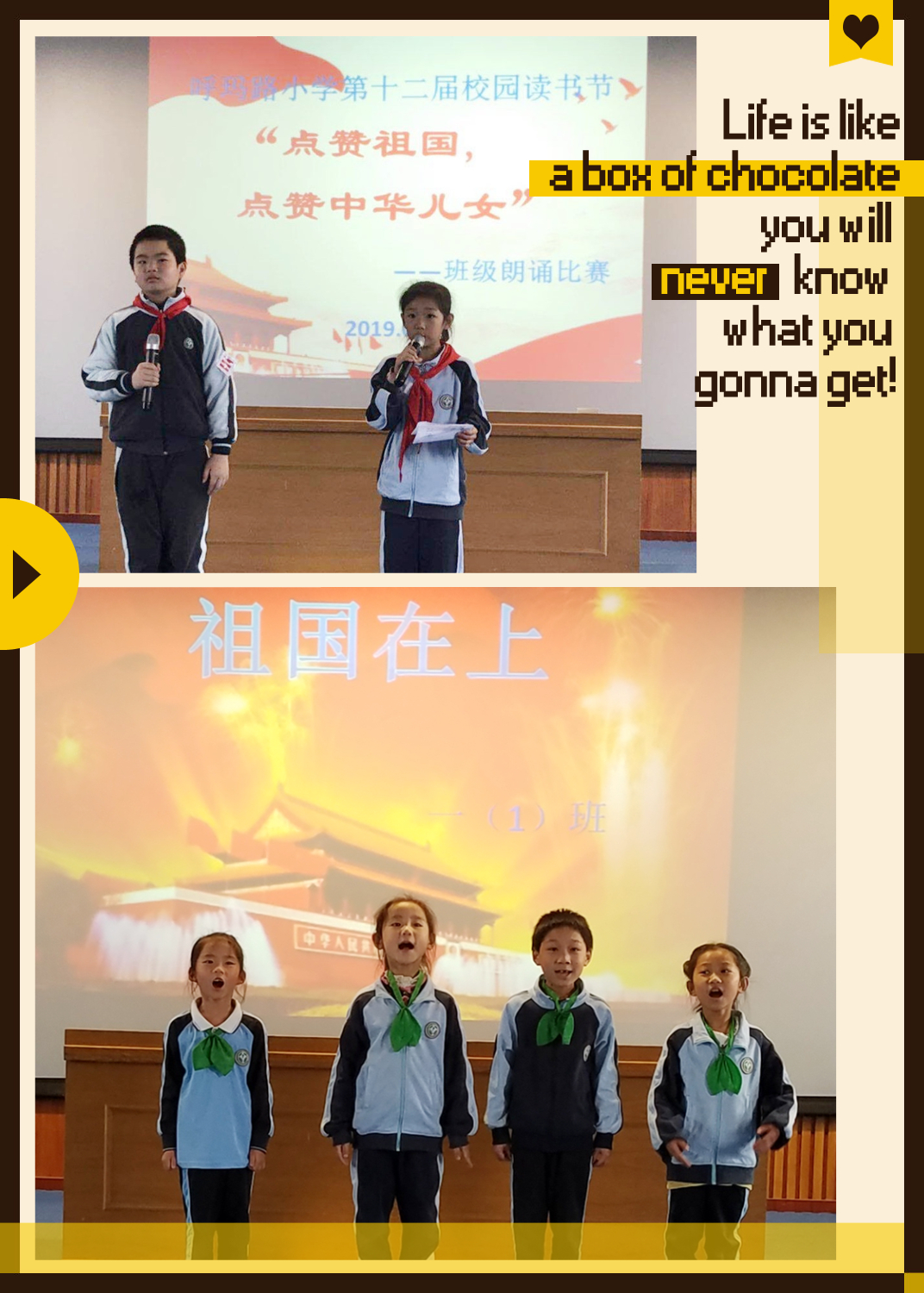 别看低年级的孩子们个子小、年纪小,却在比赛中凭着稚嫩的嗓音,真挚的情感打动了评委,他们精神饱满、仪态端庄,精彩演绎了《中国好梦》、《歌唱五星红旗》等篇目。高年级的学生全情投入,字正腔圆,或激情慷慨,或深情款款,借助诗歌诉说了内心对祖国的满腔热爱。所有参赛班级都充分体现了力争上游、朝气蓬勃的精神面貌,爱国之情溢于言表。