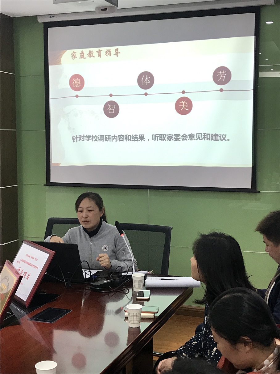 首先,德育室刘老师代表学校对前来参会的委员们表示热烈欢迎,对各位委员关心教育、支持教育的行动表示衷心感谢。依据《教育部关于建立中小学幼儿园家长委员会的指导意见》中的主要精神,向各位家长简单介绍了家委会和学校的责任与权利,明确了家委会的主体作用与学校的主导作用。并就最近的学校教育的常规工作做了沟通,恳请各位家长对学校各项工作提出宝贵意见和建议。