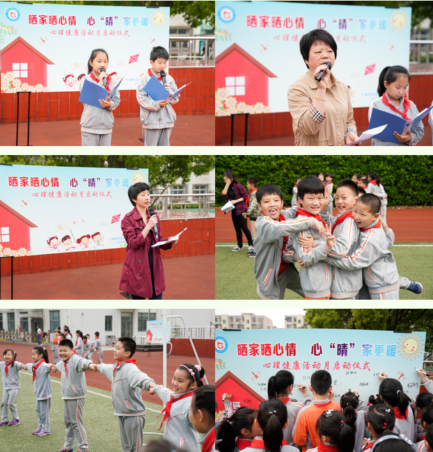 4月24日上午,陈伯吹实验小学全体师生集中在操场举行以发展性心理健康教育与积极心理学理念为主导的心理健康教育活动月启动仪式。