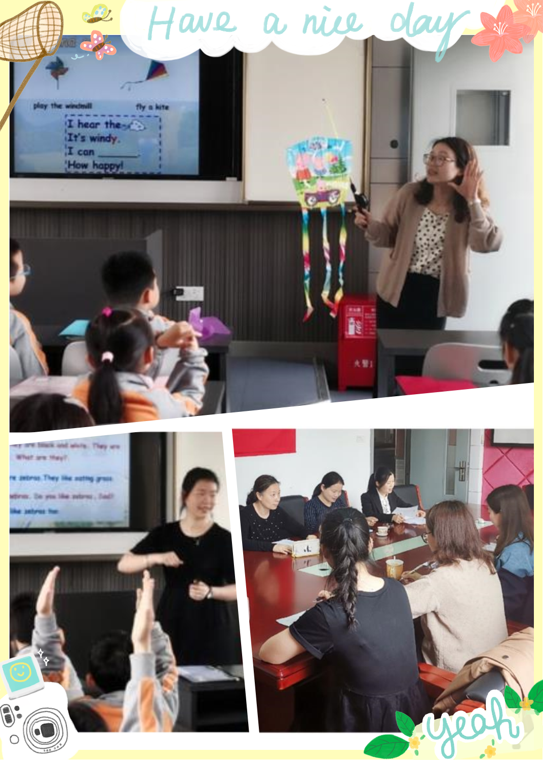 首先,由戴文嘉和瞿露两位老师分别执教了一年级的《M3U2Fun in the weather》和二年级的一课《M2U3 Animals I like》。戴老师围绕贝贝在不同天气感受到的不同快乐带领孩子们一起学习了天气类单词,并基于教材与课标,再构了文本I see/hear the… It’s… I can …。课堂上,她围绕主题Fun in the weather,运用儿歌,歌曲,猜谜语,游戏等多种形式进行教学;同时,她注重孩子们在体验中获得知识的过程,辅以教具,风筝,风车等,让孩子们在拿着实物玩一玩、说一说等过程中融入课堂、乐于学习,课堂氛围良好。瞿老师认真研读课标与教材,结合低年级学生的年龄特点创设了辛普森一家去动物园游玩的情境,由不认识各种动物的Maggie进行提问,教授四种动物名称,以及核心句型What are they? They are…瞿老师还注重新旧知识的整合,将对话文本扩展至Do you like…?What colour are they? How are they?使孩子们的知识得到迁移,让旧知识成为新知识的增长点,并通过儿歌,歌曲,游戏,猜谜等多种方式巩固所学知识。