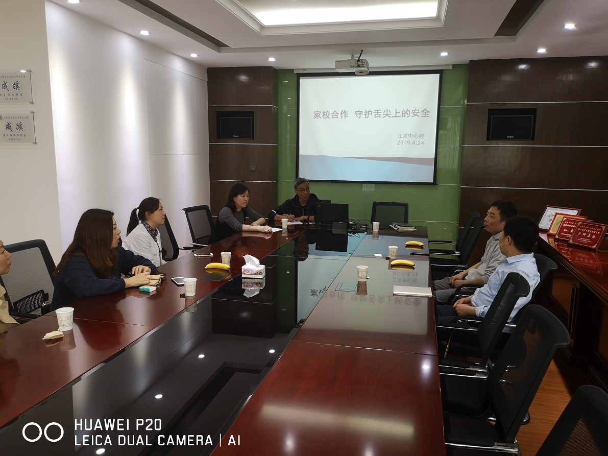 为了更好地促进家校的沟通,发挥家长委员会作用,增进家长对学校工作的了解和监督,真正达到家校共育的目标。2019年4月24日,江湾中心校家委会代表进入学校食堂,全面了解学校对食堂的管理工作。江湾中心校孙校长、德育主任刘老师、校务办主任朱老师和总务主任卢老师一起参加本次活动。
