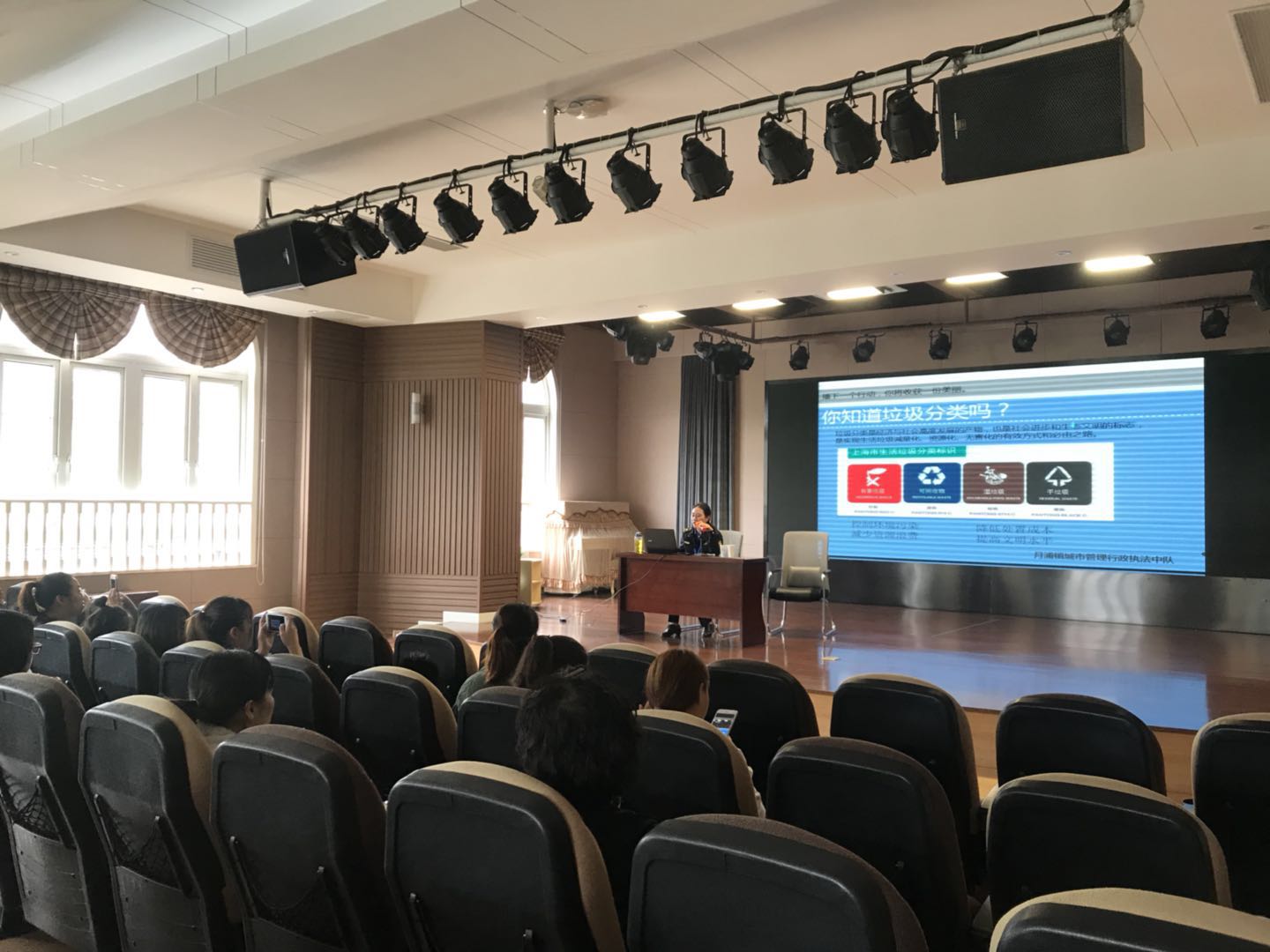 2019年4月28日下午,我园开展了“关于垃圾分类的那些事”的培训讲座,邀请月浦镇城市管理行政执法中队的曹老师为老师们介绍了什么是垃圾分类,农药的危害和怎样健康饮水等丰富的环保知识,在活动中,老师们认真倾听记录,并在与曹老师积极互动中,了解更多的环保知识,以及环境保护与健康的密切关系,从中提高老师的环保意识,共同我们的保护环境。