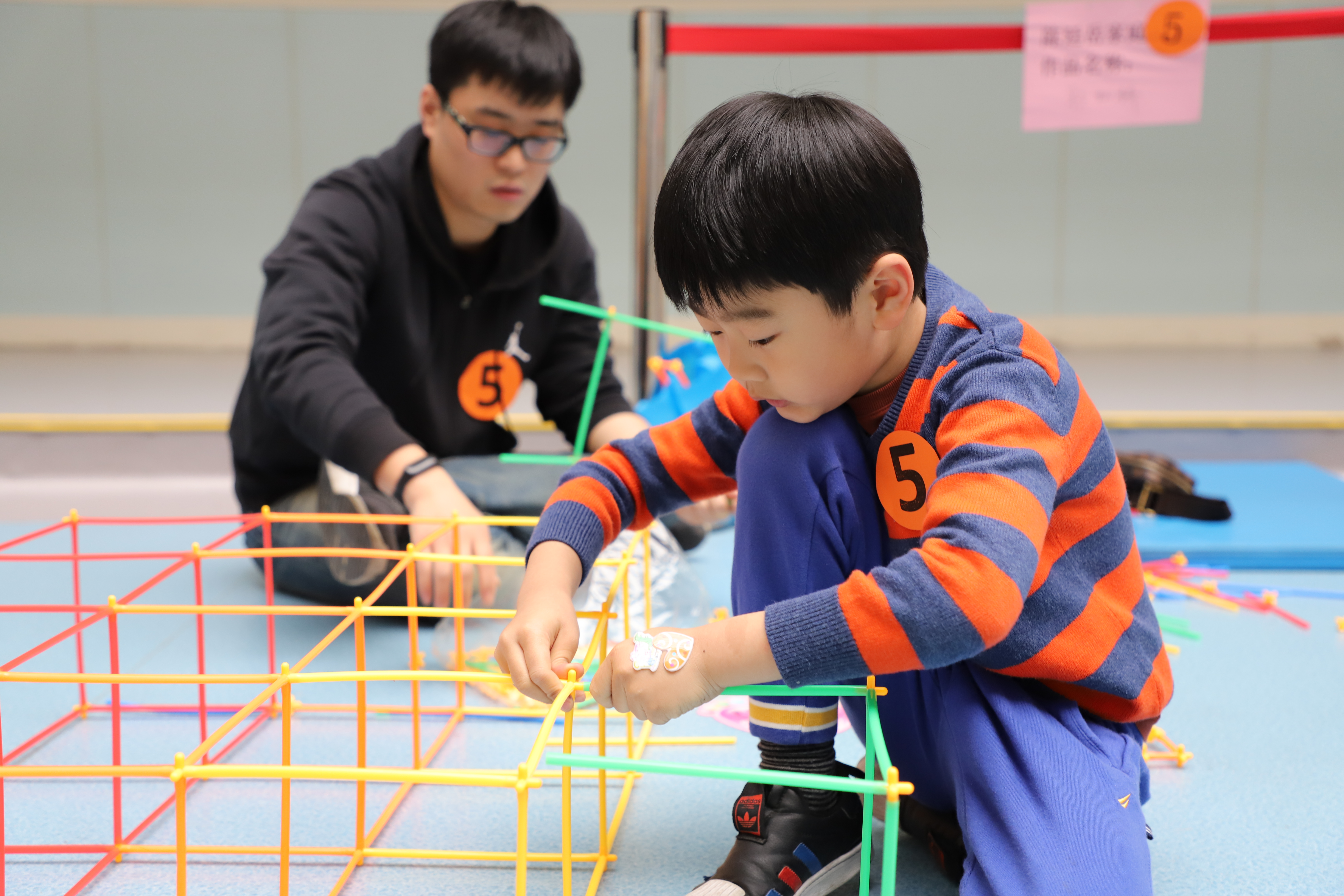 前期采用了自主报名的方式,中大班有10个家庭参加了此次活动。孩子们与家长一起搭建,用吸管积木创造性地制作螺旋形的滚高尔夫小球的轨道,在不断的调整与练习下,一件件作品完成了。想象无限、创意无限,比赛现场幼儿与家长一起配合搭建,一件件精彩的作品呈现出来了,有天梯、有时光隧道、有螺旋刀塔、有遨游太空......