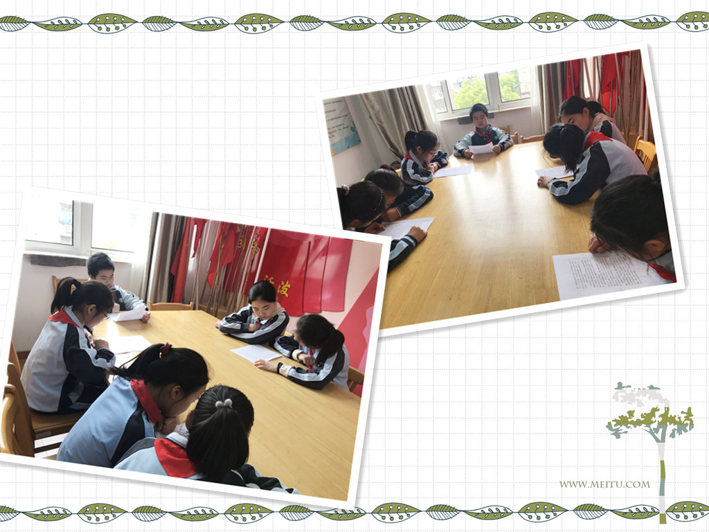 4月28日,呼玛路小学7位队员代表们围坐在“呼晓”队室,就新时代上海少年为实现中国梦时刻准备着——对中国少年先锋队上海市第八次代表大会的报告进行了梳理。