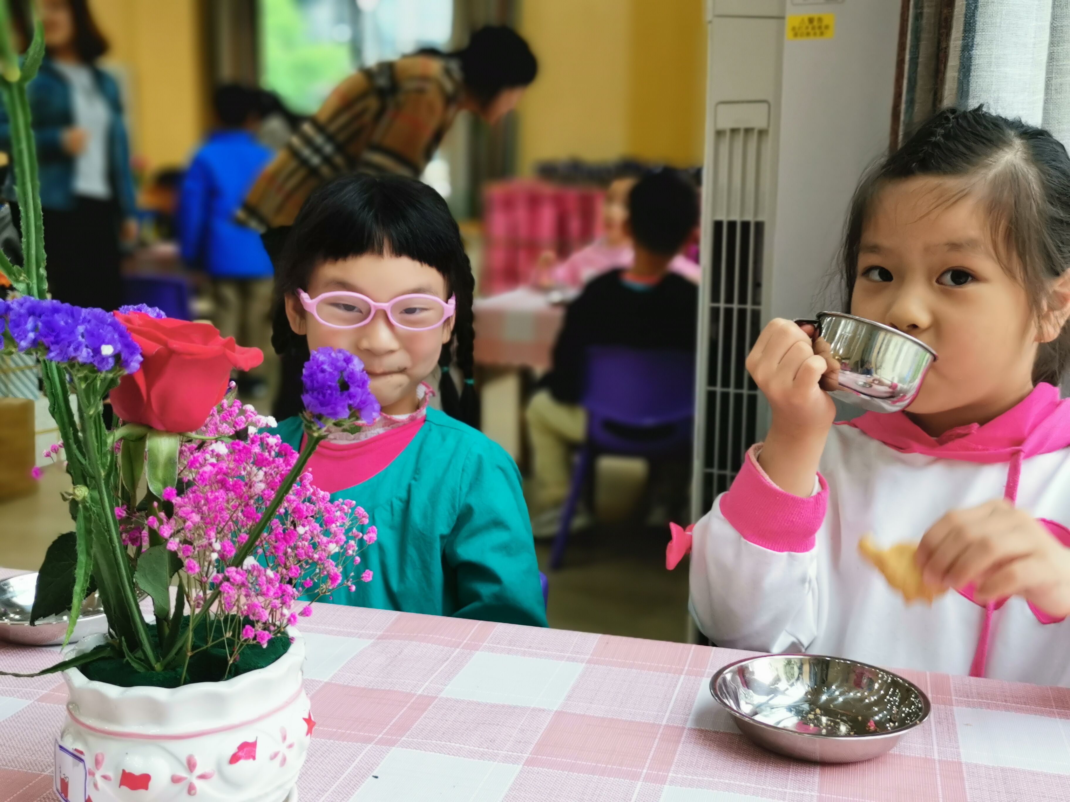 2019年4月29日《芬芳四月,赏花品茶》茶歇活动,小班小朋友用他们的画笔描绘出春的色彩,感受着花的芬芳;中班小朋友自己动手制作鲜花书签,并赠送给自己的好朋友,体会到了“赠人鲜花,手留余香”的乐趣;大班小朋友自己布置活动的环境,推开门就闻到花香,走进去如同步入花的海洋,在花的世界里品花茶真是一种美的享受!