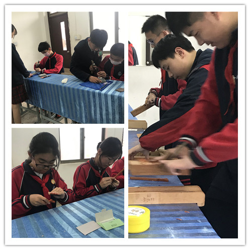 在短短的两个多小时里学生体验了以下七个项目:青团饺子DIY、陶瓷制作、艺术插花、香囊团扇制作、砚台石刻、瓷盘画、青木工坊。项目丰富多彩,兼具知识性、趣味性,让孩子能够亲自动手体验职业教育的魅力。学生积极参与热情高涨,尤其是当学生手捧自己精心制作的一件件手工作品,孩子们的喜悦之情溢于言表。