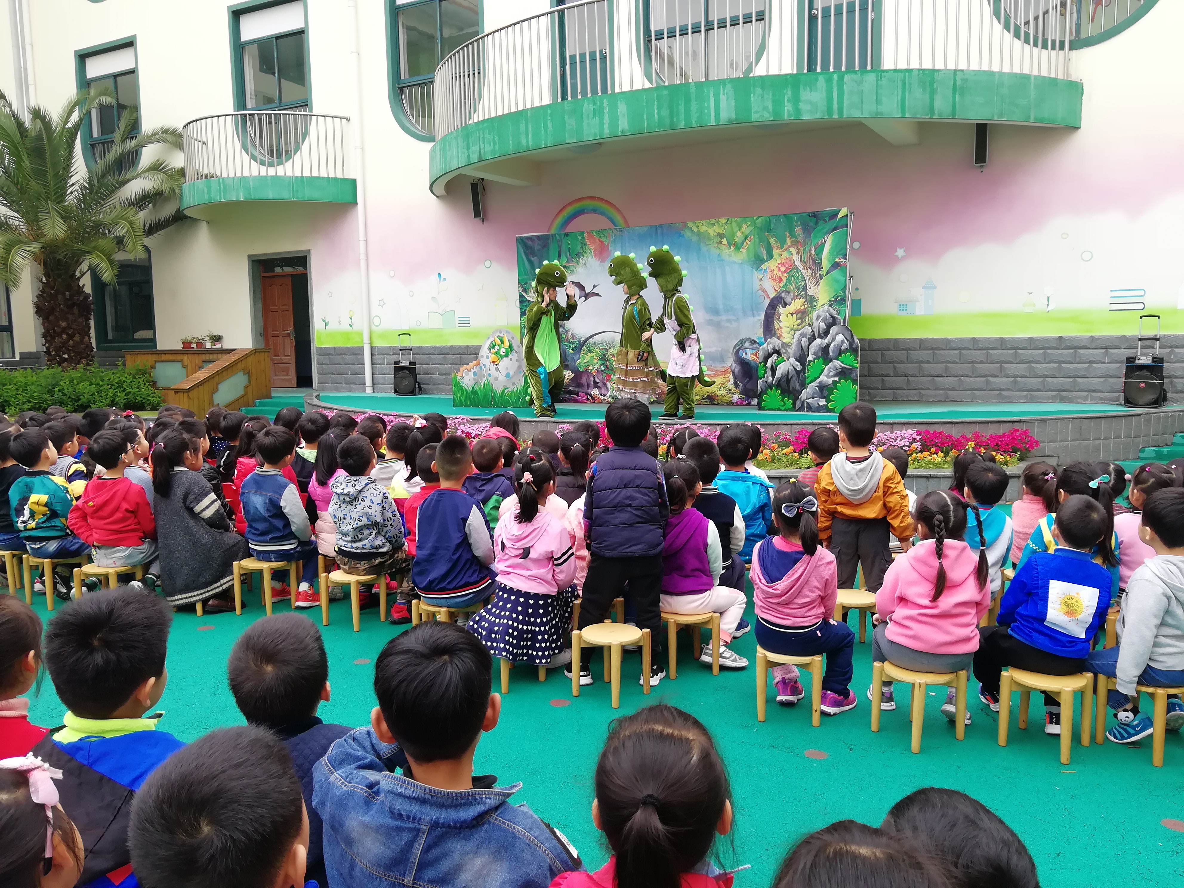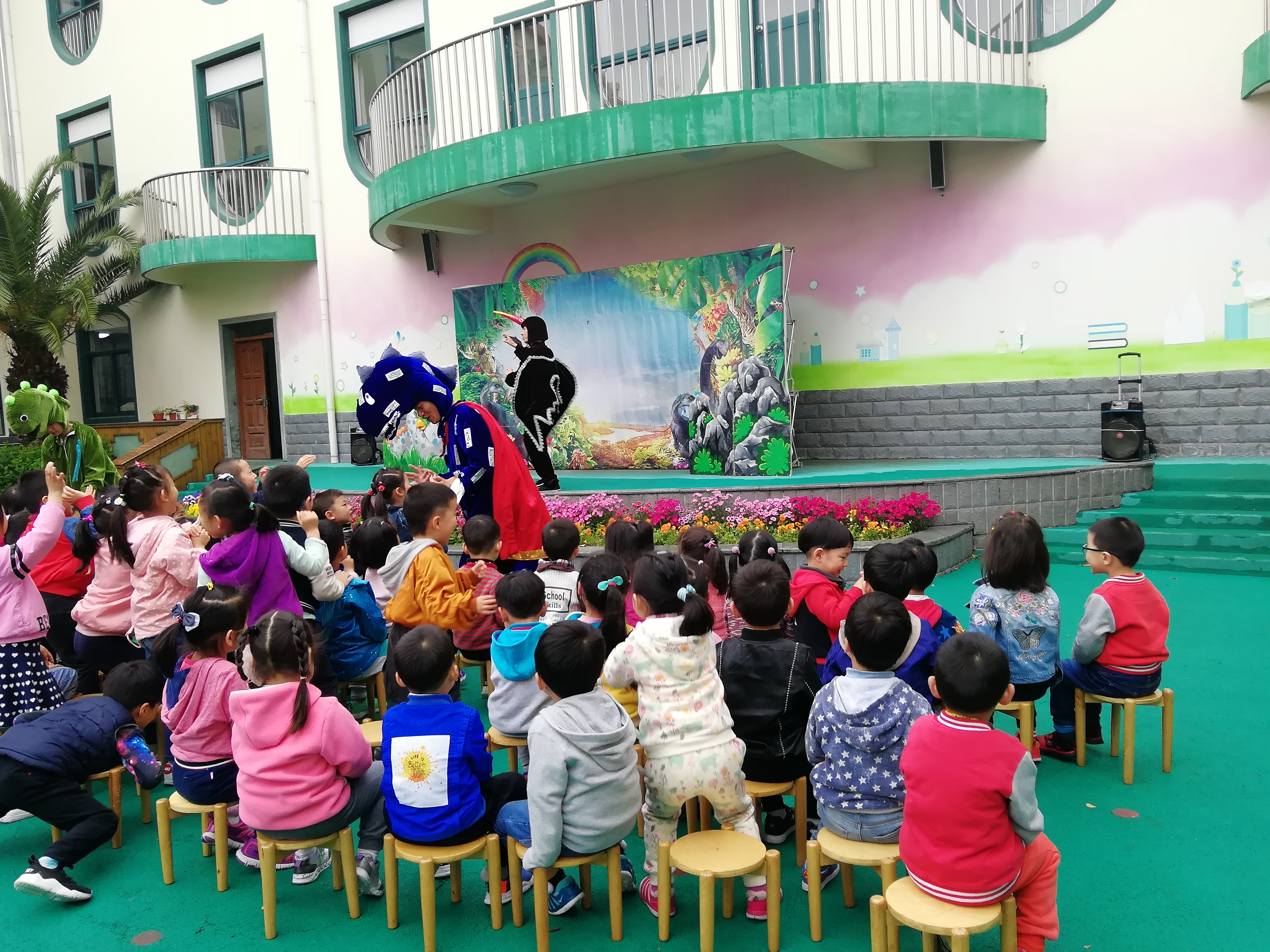 为了丰富孩子们的在园生活,让孩子们能接触更多的文化艺术,4月28日,康苑幼儿园邀请了童话剧的演员们来到幼儿园,为孩子们献上了一场精彩的童话剧《恐龙历险记》。