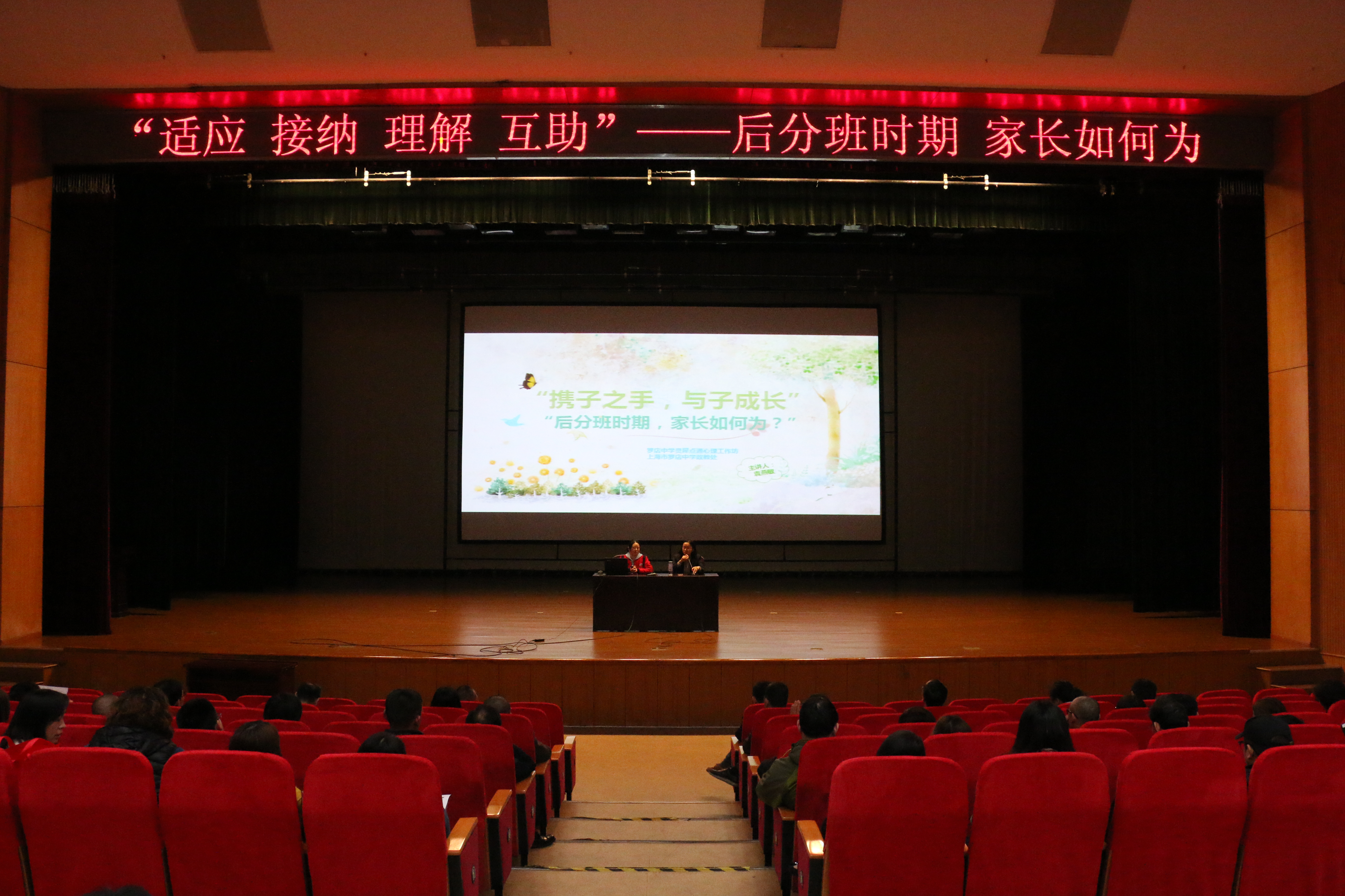 心理专职教师袁燕敏为家长们带来了微讲座《后分班时期,家长如何为》。她以“适应 接纳 理解 互助”为关键词,提纲挈领地帮助家长明晰孩子目前遇到的共性问题,并分享了应对策略。袁老师指出,适应新的学习难度、新的学习方法、新的学习排位、新的学校生活、新的学校关系是摆在学生面前的五个挑战。家长不妨以宽容的态度、拥抱的姿态接纳孩子的情绪、能力及价值,同时也应该与时俱进地理解当今社会、所在学校、孩子需求以及家长本身。听懂孩子的言下之意、重视孩子每一次的诉求、乐于分享过来人的经验都是亲子沟通的不二之选。此外,夫妻互助、家校互助、家医互助也是较为明智的解决途径。