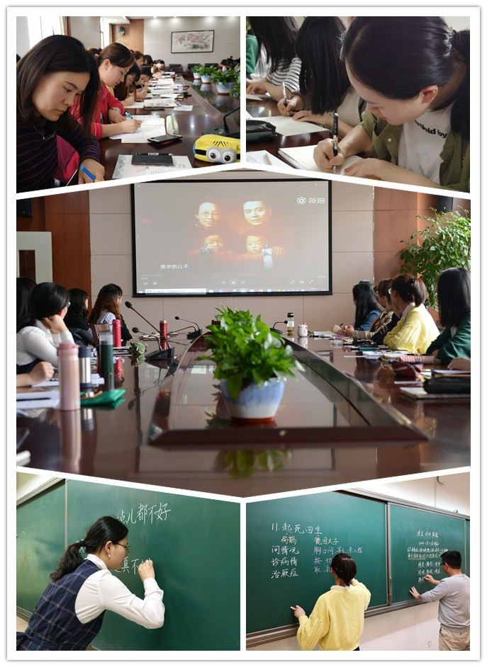 第一个议程,全体教师在支部王书记的带领下观看了《让青春在民族复兴奋斗中飞扬——习近平总书记在纪念五四运动100周年大会上的重要讲话》和跨时空的情景演绎《等待》,在共同缅怀五四先驱崇高的爱国情怀和革命精神时,老师们被邓稼先夫妇的家国情怀、伉俪情深感动得热泪盈眶。习总书记的深情寄语和老一辈科学家的高风亮节点燃了老师们的青春热情和奋斗热情。