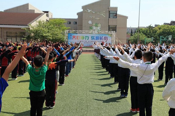 “耶!”5月5日上午,长江路小学的操场上传来此起彼伏的欢呼声,主题为“齐心协力乐游长小”的低年级期中综合评价活动开展得热闹非凡。