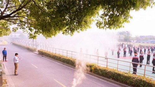 在“5•12防灾减灾日”到来之际,为了进一步加强学校安全工作,增强全校师生消防安全意识,提高自救防范能力,做到灾难发生时,能临危不乱、有序、迅速地按照逃生路线安全疏散,确保师生生命安全和学校安全,华东师范大学附属杨行中学于5月10日升旗仪式前,按照上级部门的要求,在政教处的精心组织下,开展了全校性的应急疏散演练活动。