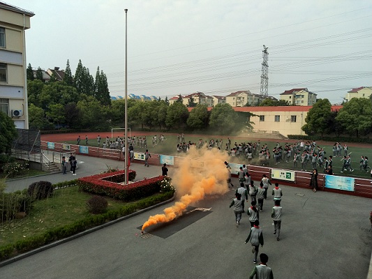 烟雾阵阵,警报长鸣。各班级同学在班主任老师的带领下,迅速离开教室,按预定路线进行疏散。教师也井然有序地沿逃生路线撤离。在1分56秒后,我校师生在操场集合,圆满达成了此次逃生演练的预定效果。