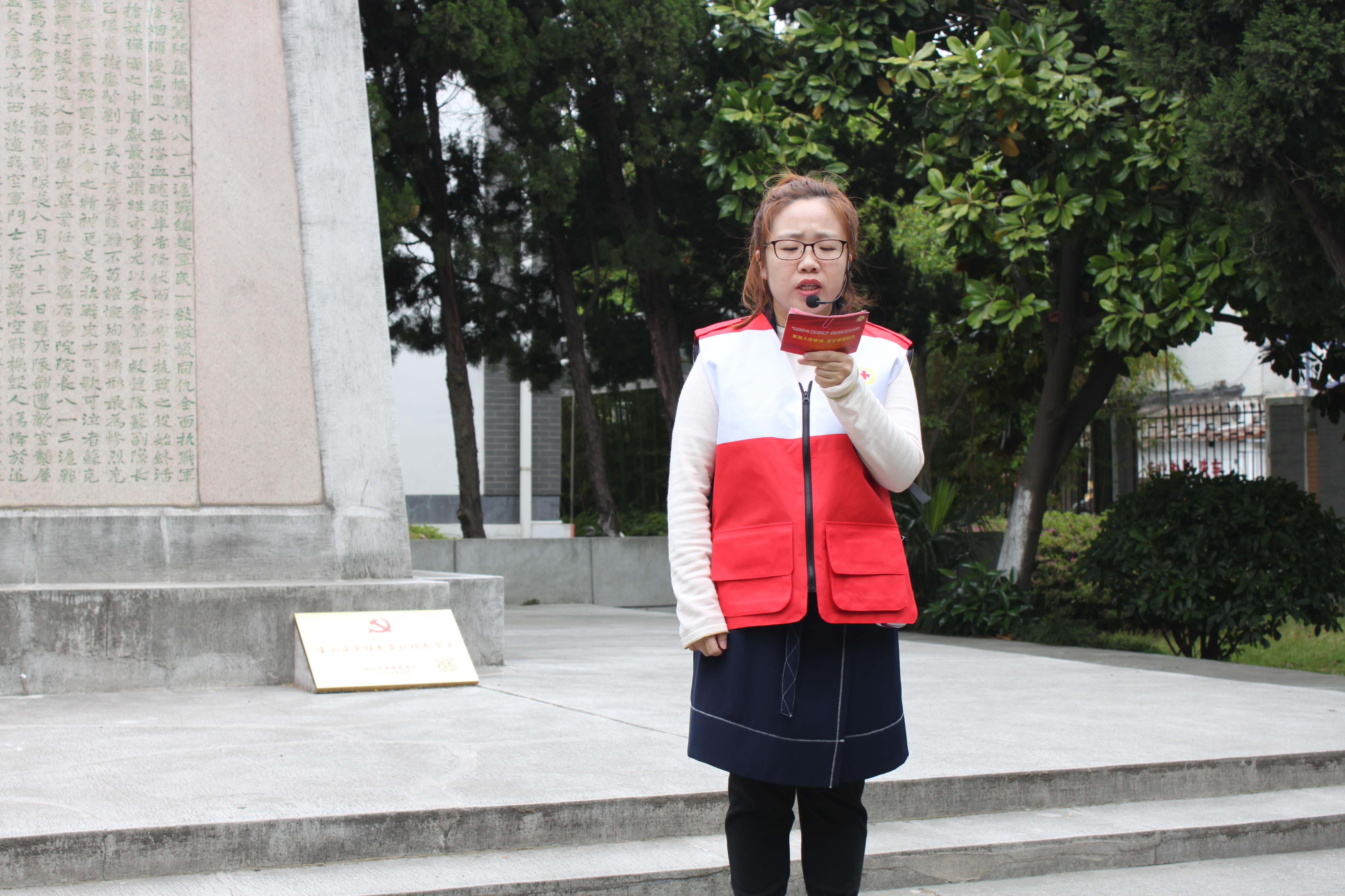 活动由陈伯吹中学金玉萍老师主持,宝山区红十字会副调研员俞奕以讲故事的形式向大家介绍了红十字会的历史来历,红十字会讲解员陈伯吹中学林皆钦老师讲述了纪念碑及烈士们的事迹,学生们诗朗诵《飘扬的红十字旗》也表达了对革命先辈们的无比崇敬!最后大家向先烈献花,环绕瞻仰红十字纪念碑,重温硝烟弥漫的战火年代。