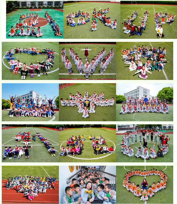 近日,陈伯吹实验小学开展心理健康教育活动月系列活动之班级创意集体照合影活动。