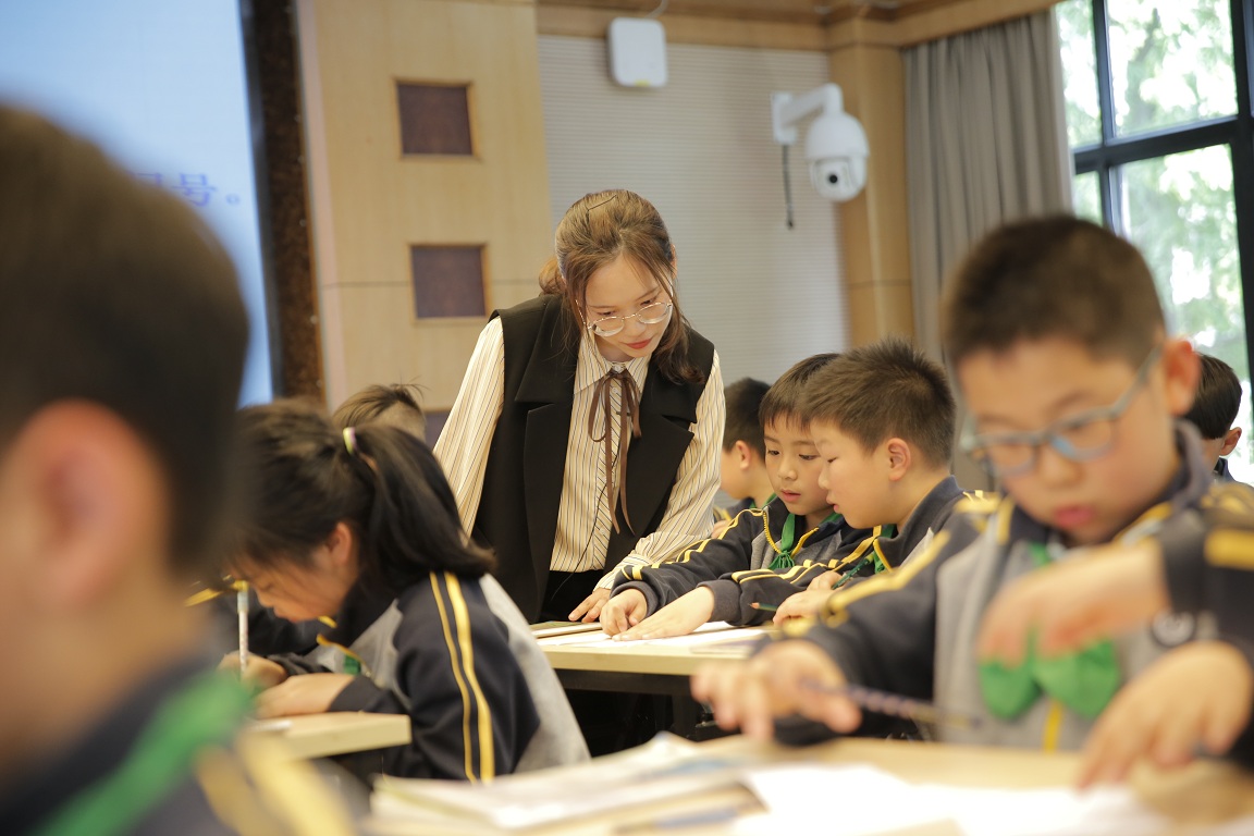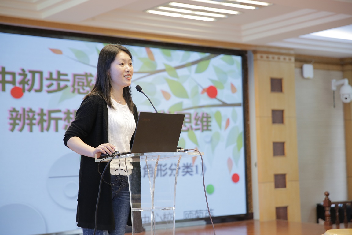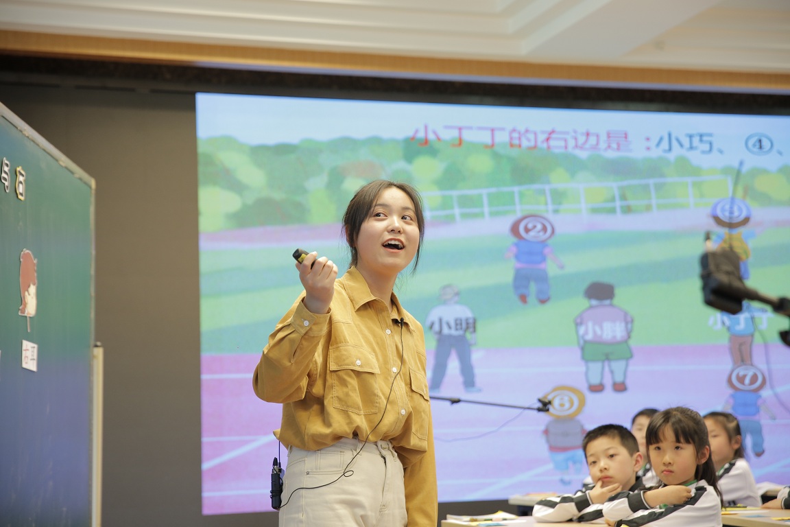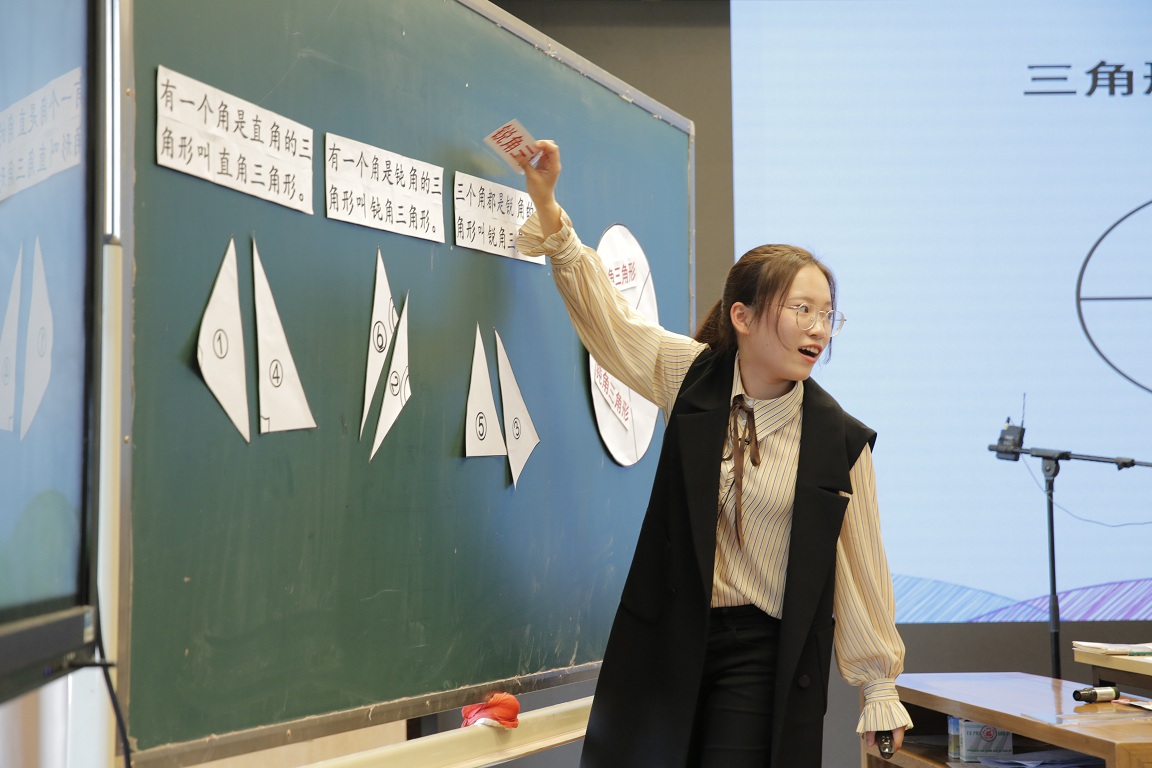 本次活动先由江湾中心校的两位青年教师朱佳欢老师和倪雪老师进行了课堂实践。两位老师分别执教了两堂《图形与几何》模块的内容:一年级的《左和右》和二年级的《三角形的分类》。