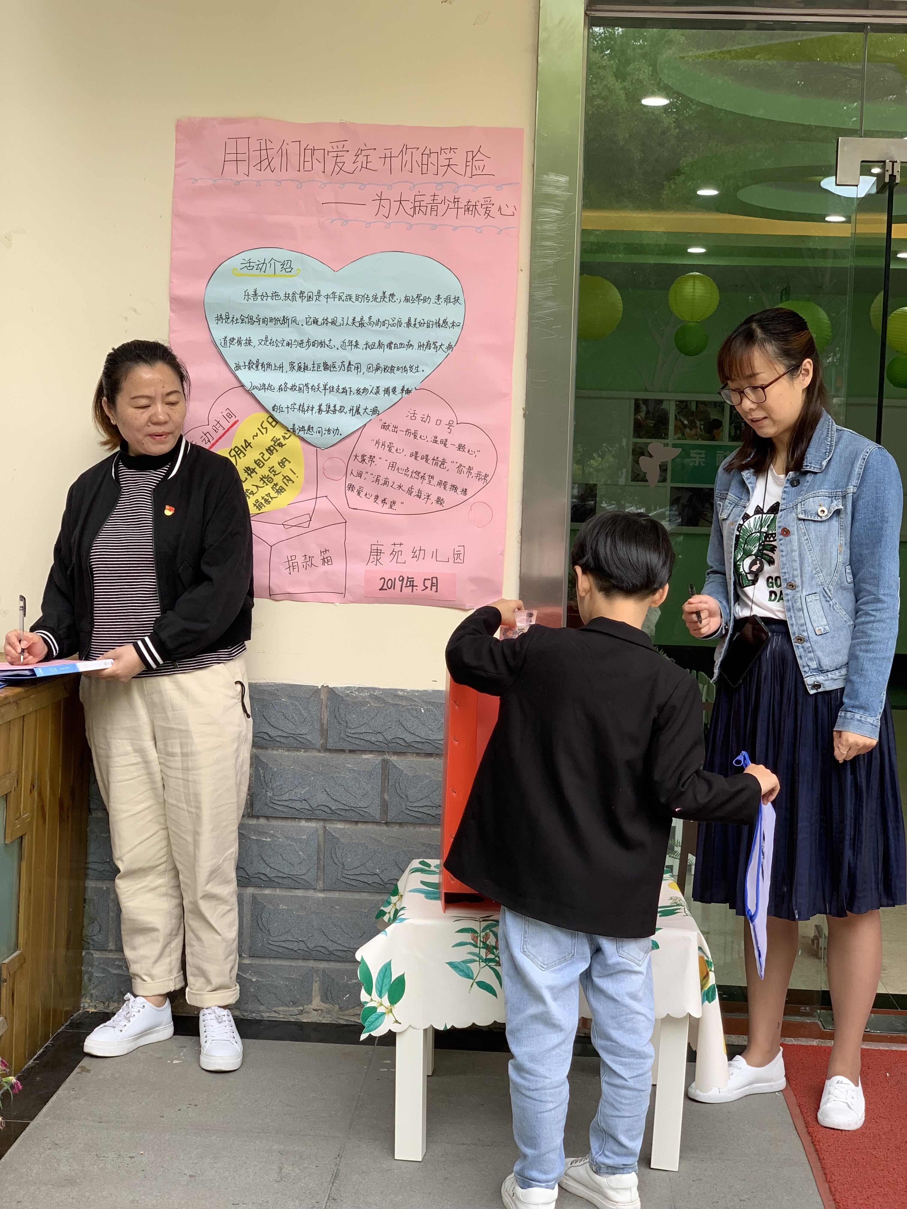 康苑幼儿园党支部带领全体党员教师和幼儿于5.14—5.15将自己的爱心捐款投入制定捐款箱内。这一活动得到了家长的大力支持,孩子们纷纷拿出自己的钱罐,取出自己的零花钱投入捐款箱。