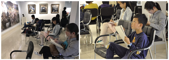 学员们现场临摹俞晓夫作品,零距离的欣赏观摩让学员们对大师作品的绘画画面技法和笔触有了进一步直观的认识,这是在课堂教学无法提供的宝贵学习机会。