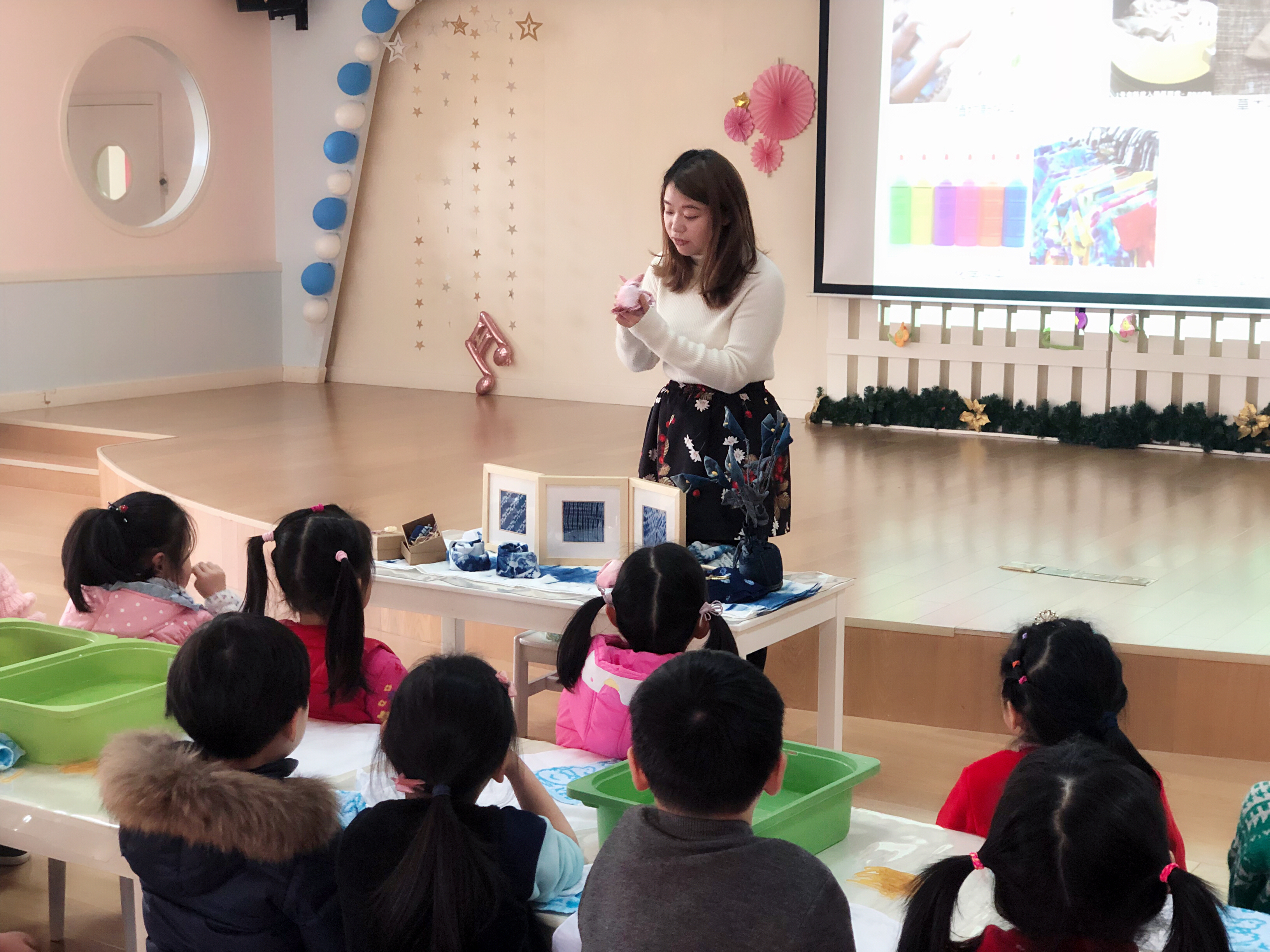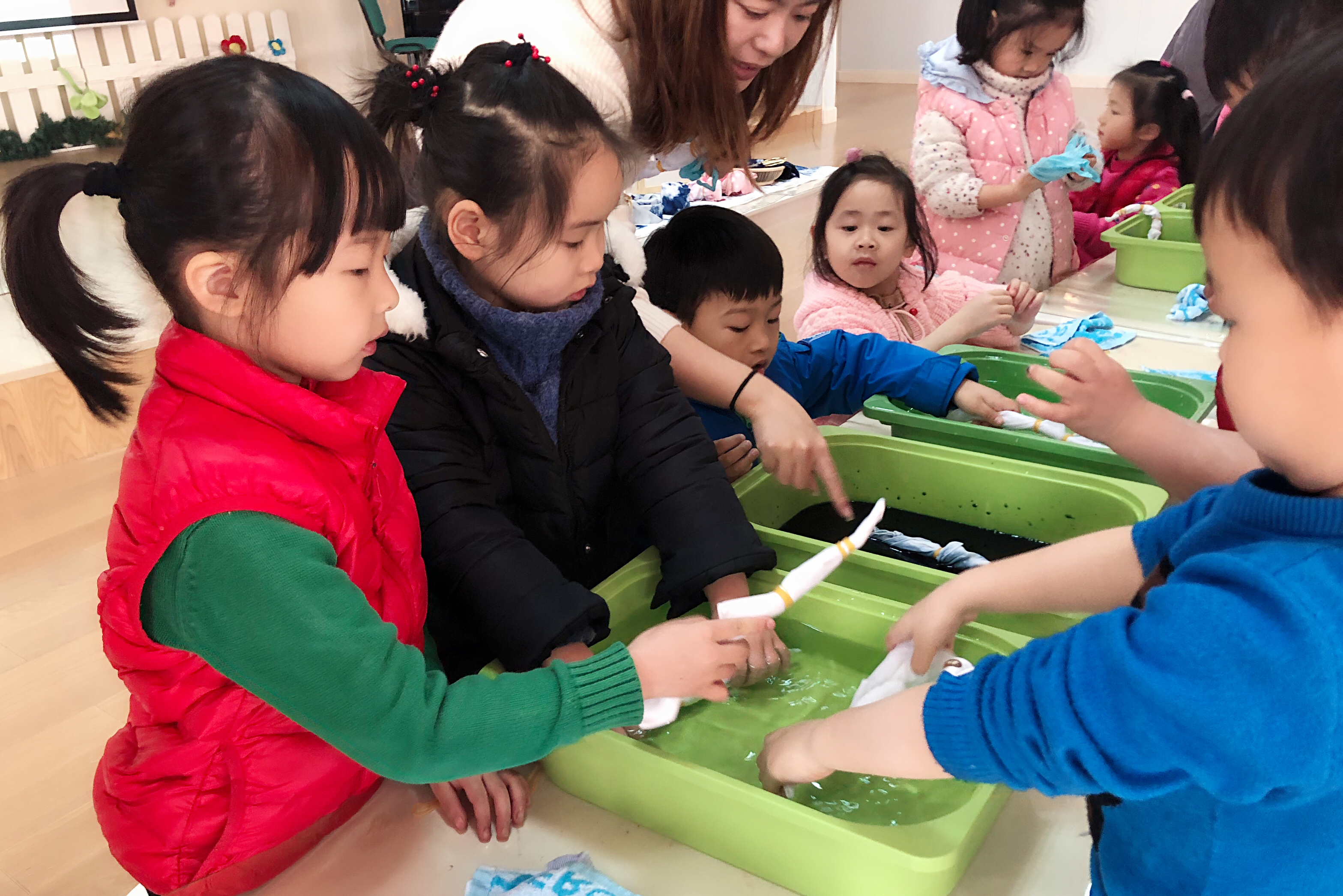 3月7日,宝山区馨佳苑幼儿园的孩子们熏陶了一场别开生面的扎染艺术,并亲身动手进行了体验。