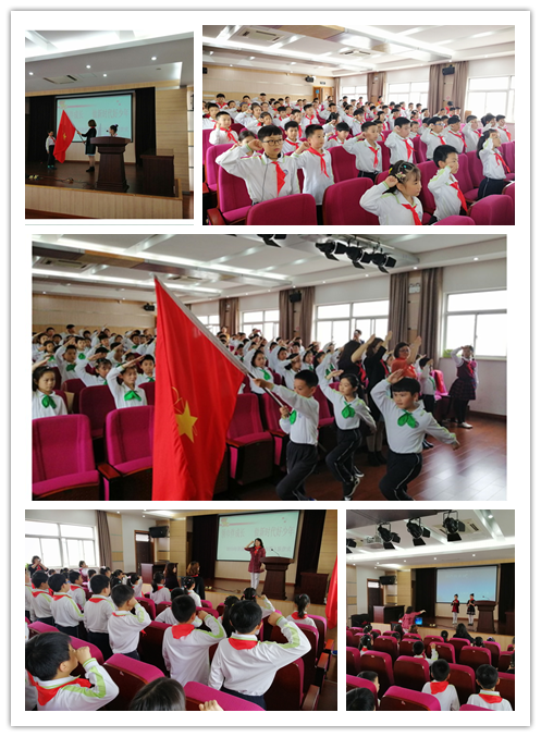 最后,在小学部大队辅导员刘老师的带领下,孩子们庄严地举起右手,在队旗下呼号!“时刻准备着,为共产主义事业而奋斗!” 一字一句,铿锵有力,充分显示了作为社会主义事业接班人的信心和决心。