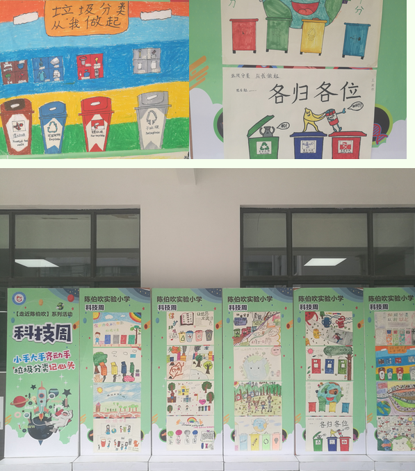 日前,陈伯吹实验小学正如火如荼开展以“小手大手齐动手,垃圾分类记心头”为主题的科技周之“垃圾分类创意画”活动。