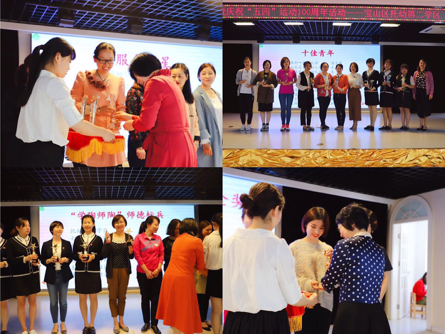 2019年5月20日下午,托幼二学区“悦读悦美”暨庆祝“五四”运动100周年活动在机关幼儿园举行。活动中馨佳苑二幼的老师们向学区展示了获得金奖的诗朗诵《国旗》,同时我园的张玲老师获得“学陶师陶楷模、标兵”、高媛老师获得“优秀工会积极分子”、朱璇一老师获得“优秀服务之星”、朱莲老师获得学区“十佳青年”。