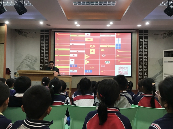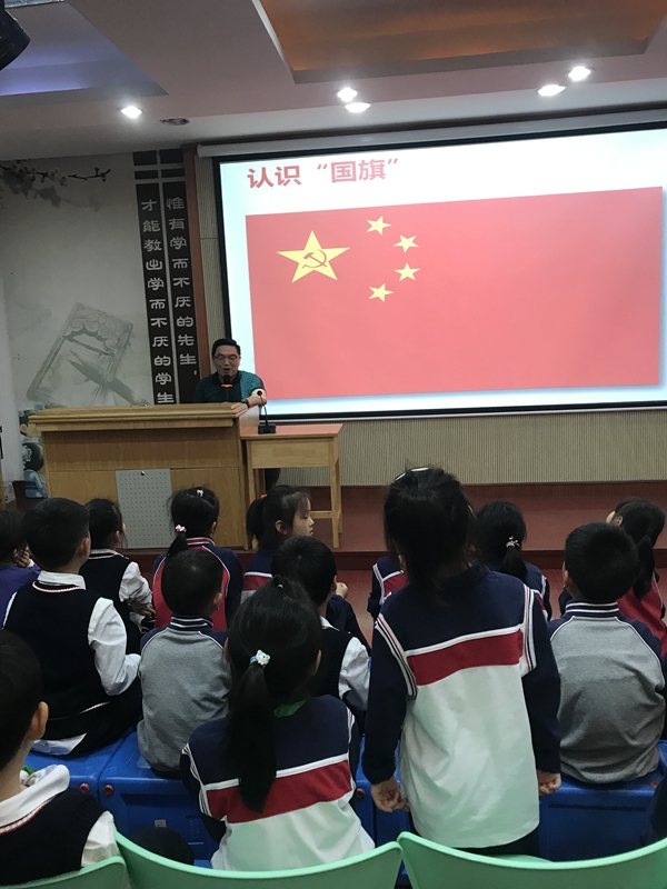 40分钟的讲座虽然短暂,但听得津津有味的同学们意犹未尽,相信他们对国旗、国歌和国徽有了进一步的了解,也进一步激发了他们的爱国热情。