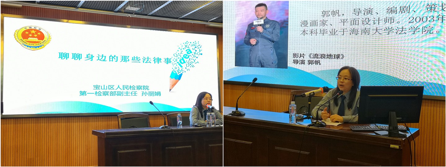 为了今天的讲座达到良好的教育效果,也为了让学生们更知法、懂法、守法,学校政教处俞莉娜主任与我们学校的法制副校长——上海市宝山区人民检察院第一检察部副主任,上海检察机关第十一届优秀公诉人,复旦大学法学院法律硕士孙丽娟老师前期做了多次沟通。通过精心的准备,今天孙丽娟老师为全校师生做了题为《聊聊身边的那些法律事》的法制专题讲座。