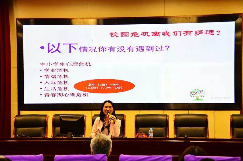 为提高教师识别心理危机预警信号的能力,了解相关应急处理方法,更有效地预防心理危机事件的发生,促进教师队伍的专业化建设,2019年5月10日下午我校有幸邀请到上海市心理学科高级教师、上海市学校中级心理咨询师、国家二级心理咨询师、资深专职心理教师杭艺老师为全体教职工带来了校园危机干预——学生安全教育、应急管理的专题讲座,这也是我校2019年"保持心晴,向阳而生"心理月系列活动之一。