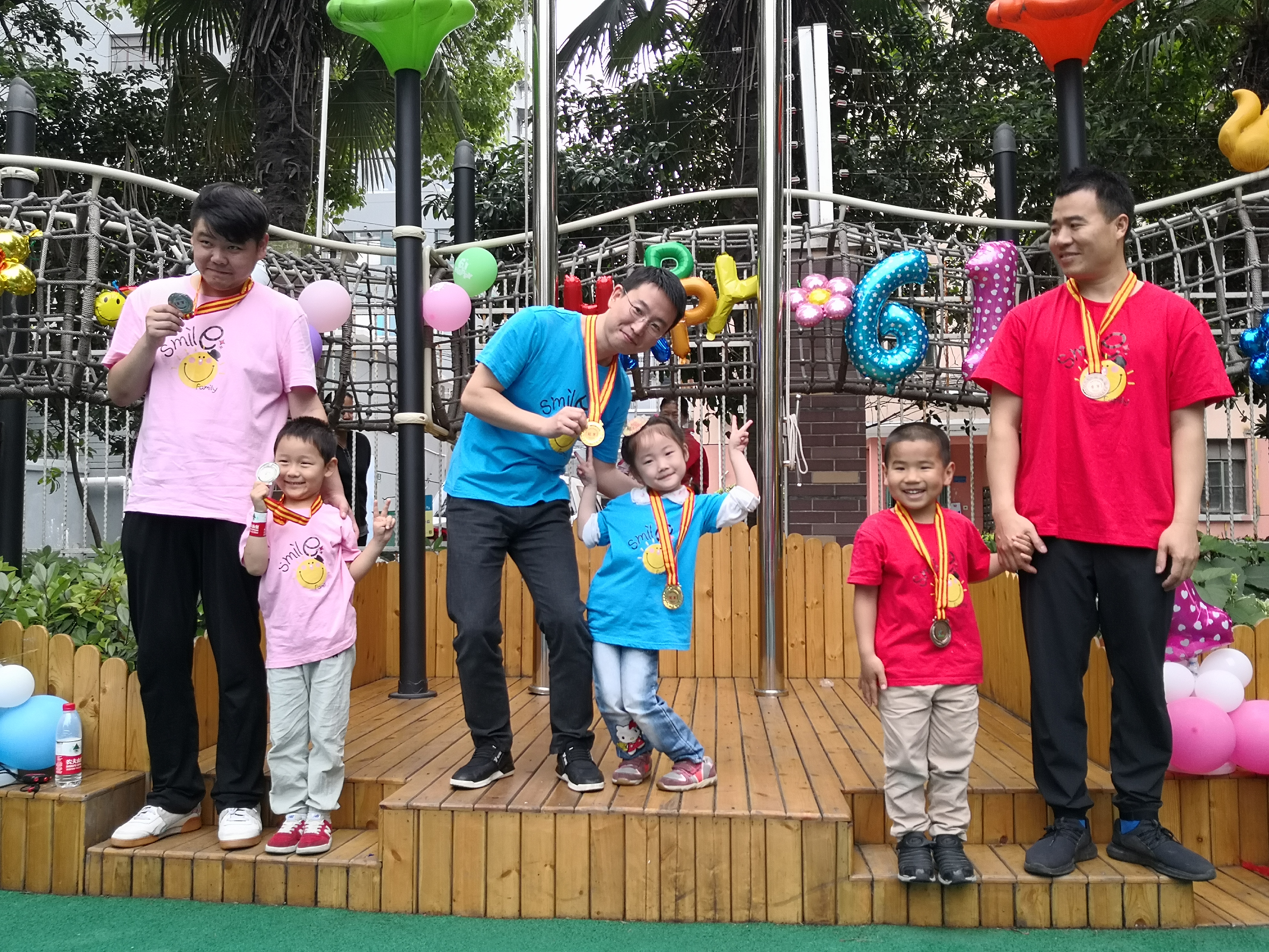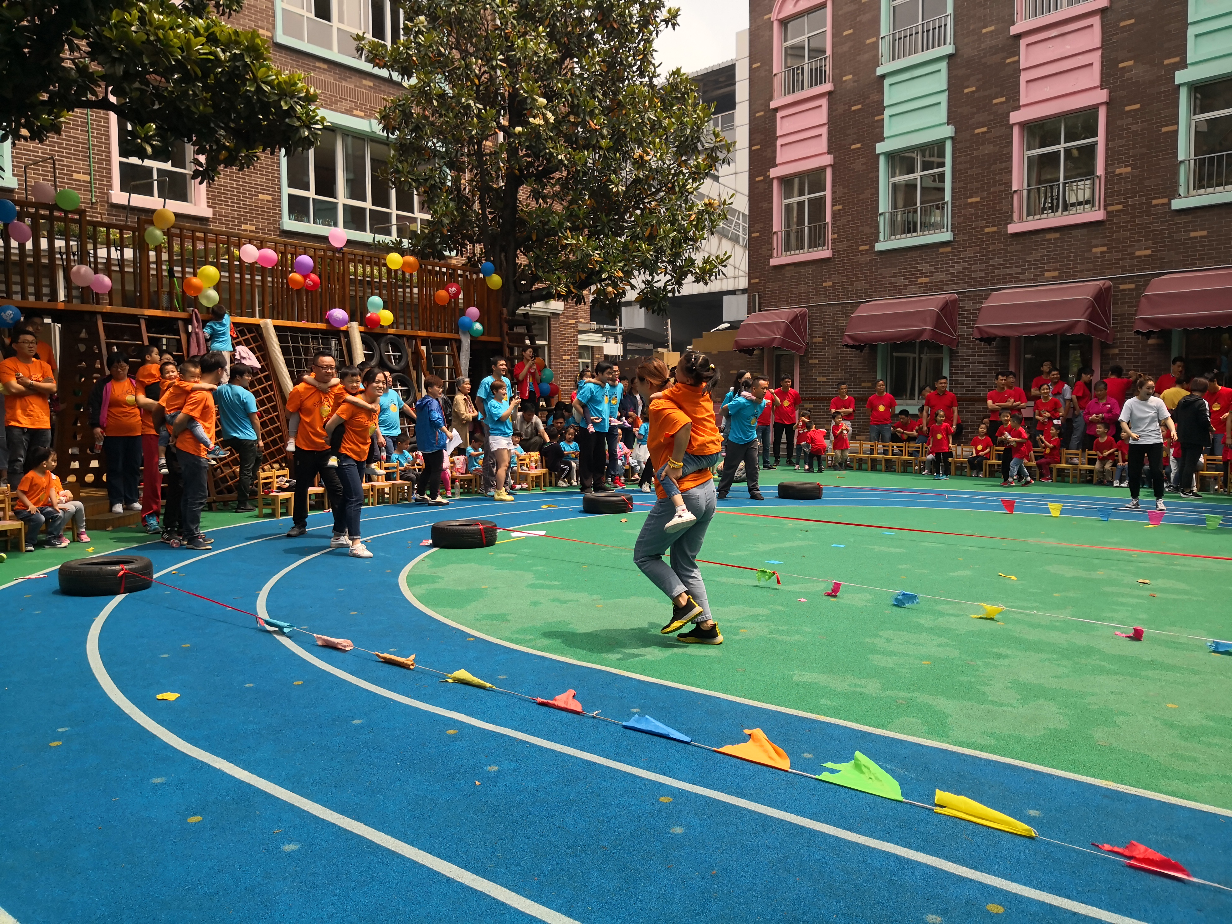 随后,快乐、有趣的体育游戏开始了。分别是“跳大绳”、“传接巨球”、“东南西北”、“两人三足”、“背娃接力”。孩子和爸爸妈一起参与到活动之中,灿烂的笑容展露在每个人的脸上,让每一个家庭都收获到了成功、快乐和幸福!