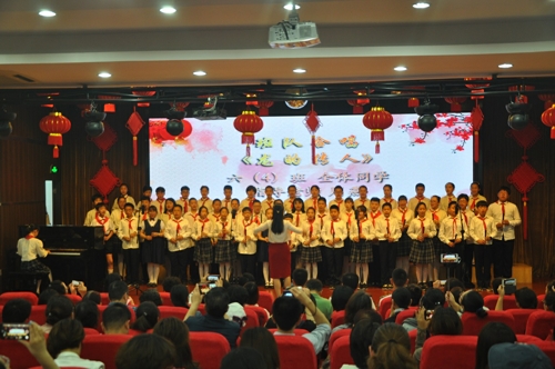 第一篇章 “祖国颂”文艺汇演暨校艺术节闭幕式。首先沈校长代表学校,全校小朋友、少先队员们致以节日的祝福。接着在校艺术节上有着优异表现的队员和中队一一上台为大家奉献了一台精彩纷呈的演出。既有悠扬动人的民乐演奏,又有柔情浪漫的西洋乐表演;既有热情快乐的舞蹈,又有高昂激越的歌声……我校孩子们的演出可谓精彩绝伦,赢得了嘉宾和家长们的阵阵掌声。在典礼上我们还分别颁出了区优秀少先队员、校优秀少先队员、市青少年十项系列桥牌赛获奖队员、校艺术节获奖队员和中队。
