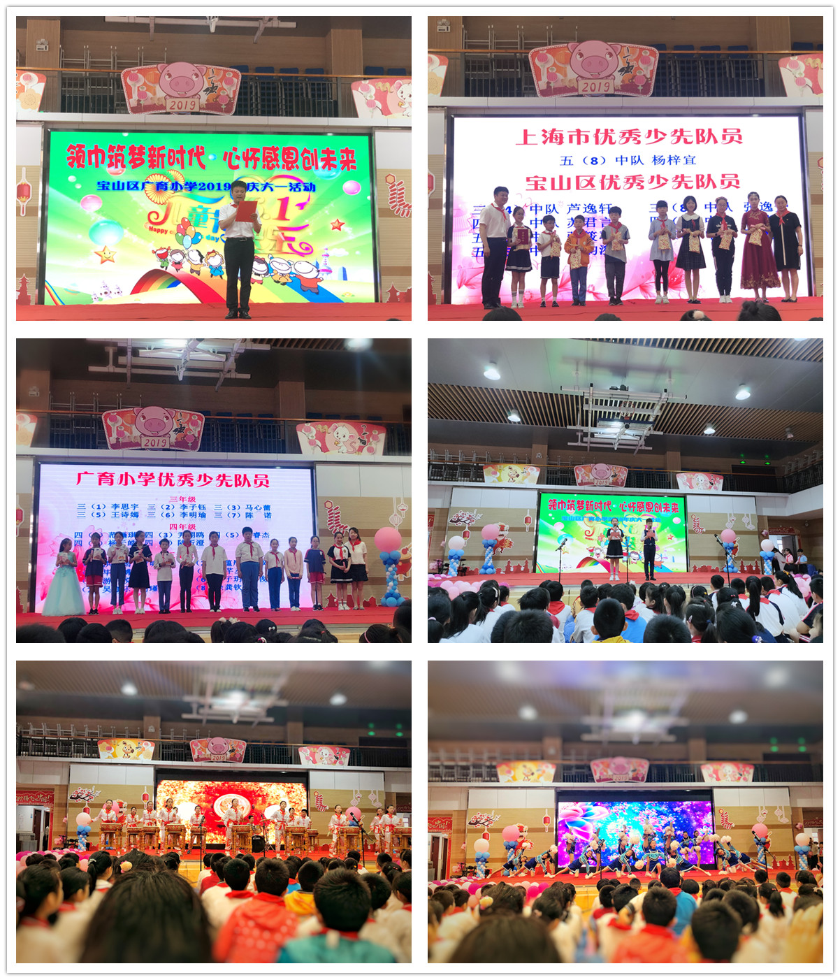 为丰富校园文化生活,激发少先队员爱国、爱校、爱父母的情感,广育小学以建国70周年为背景,于5月31日开展2019年庆“六一”活动,全体师生及部分家长代表汇聚一堂,共同庆祝“六一”儿童节的到来。