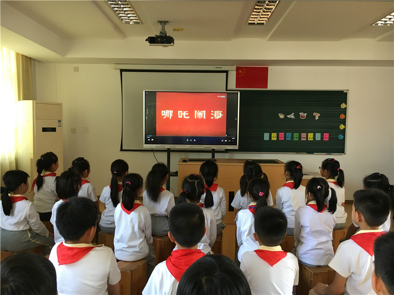 《大闹天宫》、《哪吒闹海》、《小蝌蚪找妈妈》、《牧童短笛》是中国动画史上最为经典的作品,其中的背景音乐也非常具有民族特点。我们在音乐、美术课上观看影片的同时,从绘画、构图、音乐、乐器等艺术方面进行剖析,让孩子们对经典作品有更深入的理解。