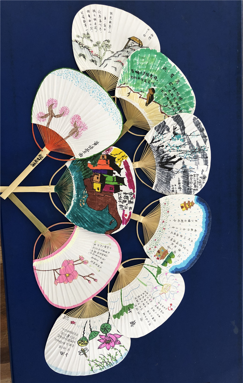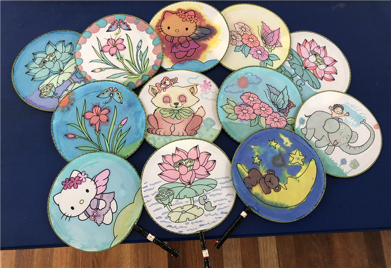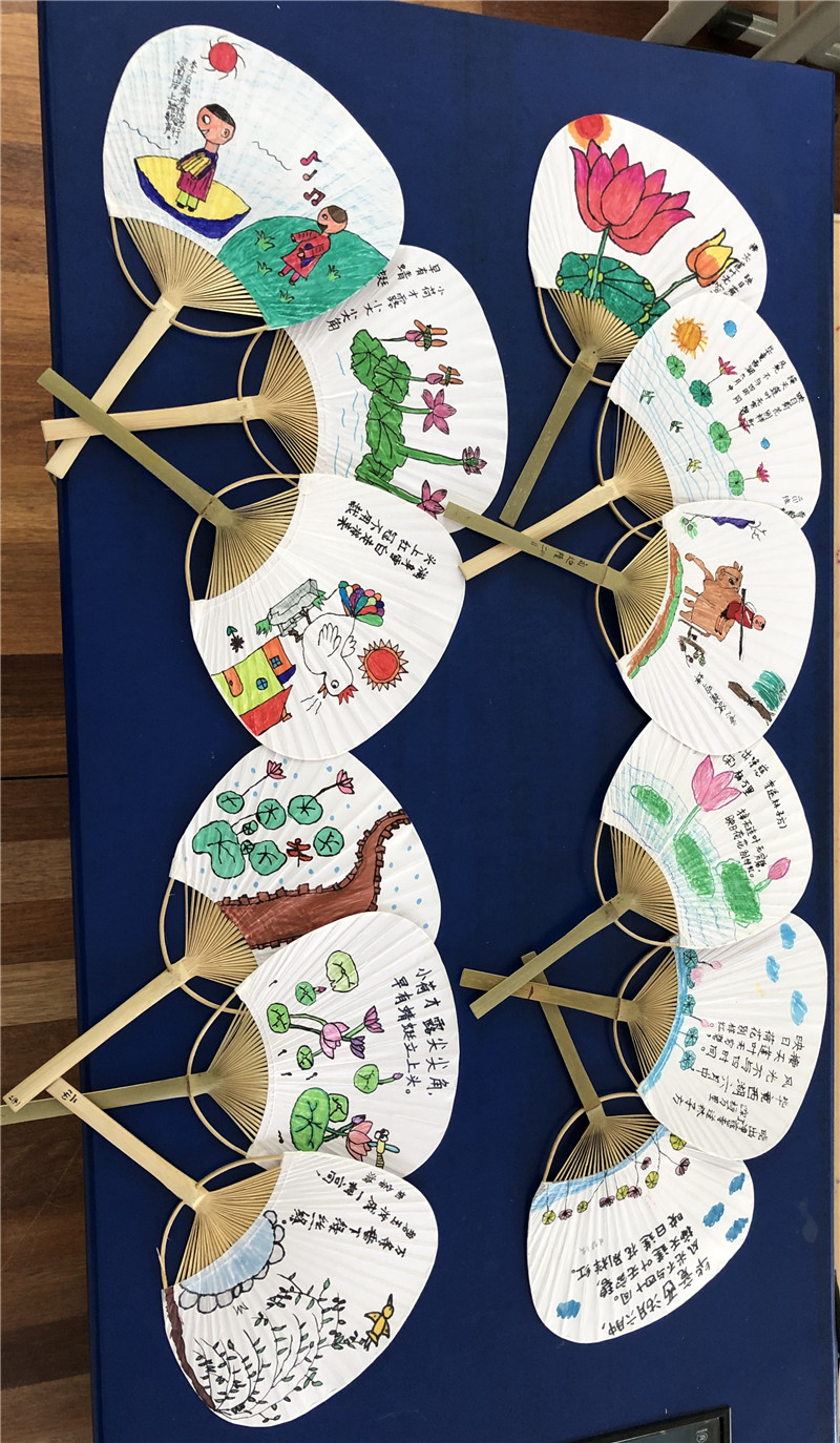 庆六一活动当天,全校齐画团扇,孩子们用稚嫩、明艳的笔调画出了古诗文的意蕴,展现了他们的天真烂漫和奇思妙想。