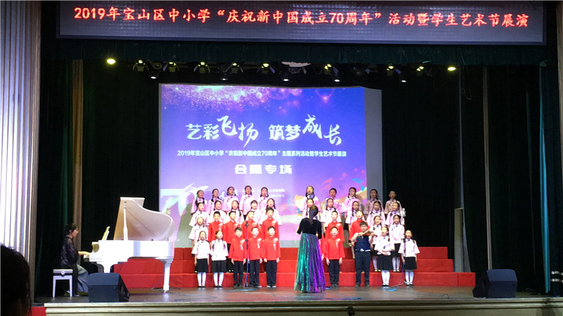 艺彩飞扬 筑梦成长——2019年宝山区中小学庆祝新中国成立70周年主题系列活动暨学生艺术节展演在宝山区少年宫、行知中学举行。我校近80名学生参加了展演,他们载歌载舞,用热情的歌声抒发对祖国的真挚情感,用灵动的舞姿表达对幸福生活的向往。集体艺术项目的开展,营造健康向上的学校文化环境,丰富校园文化生活,全面实施美的教育,提升学生艺术修养。
