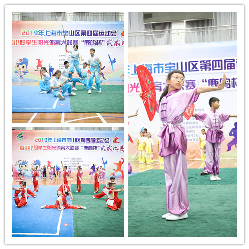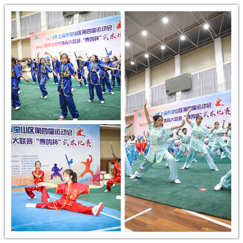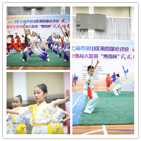 6月2日,2019年宝山区第四届运动会暨中小职学生阳光体育大联赛“鹿鸣杯”武术比赛在顾村中学体育馆顺利举行。本次大赛由上海市宝山区教育局、上海市宝山区体育局主办,宝山区鹿鸣学校承办,宝山区翔羽青少年体育俱乐部协办,中国人寿保险提供支持,来自宝山区的34支代表队共823名运动员参与角逐,大展英姿。上海市教委体卫艺科处时多、上海市学生活动管理中心副主任盛炯、上海师范大学副教授高幕峰、宝山区教育局副局长朱燕萍、基教科副科长陈惠娟、体卫艺科张勇、体育局竞训科李玉珍等多位领导出席了本次比赛。