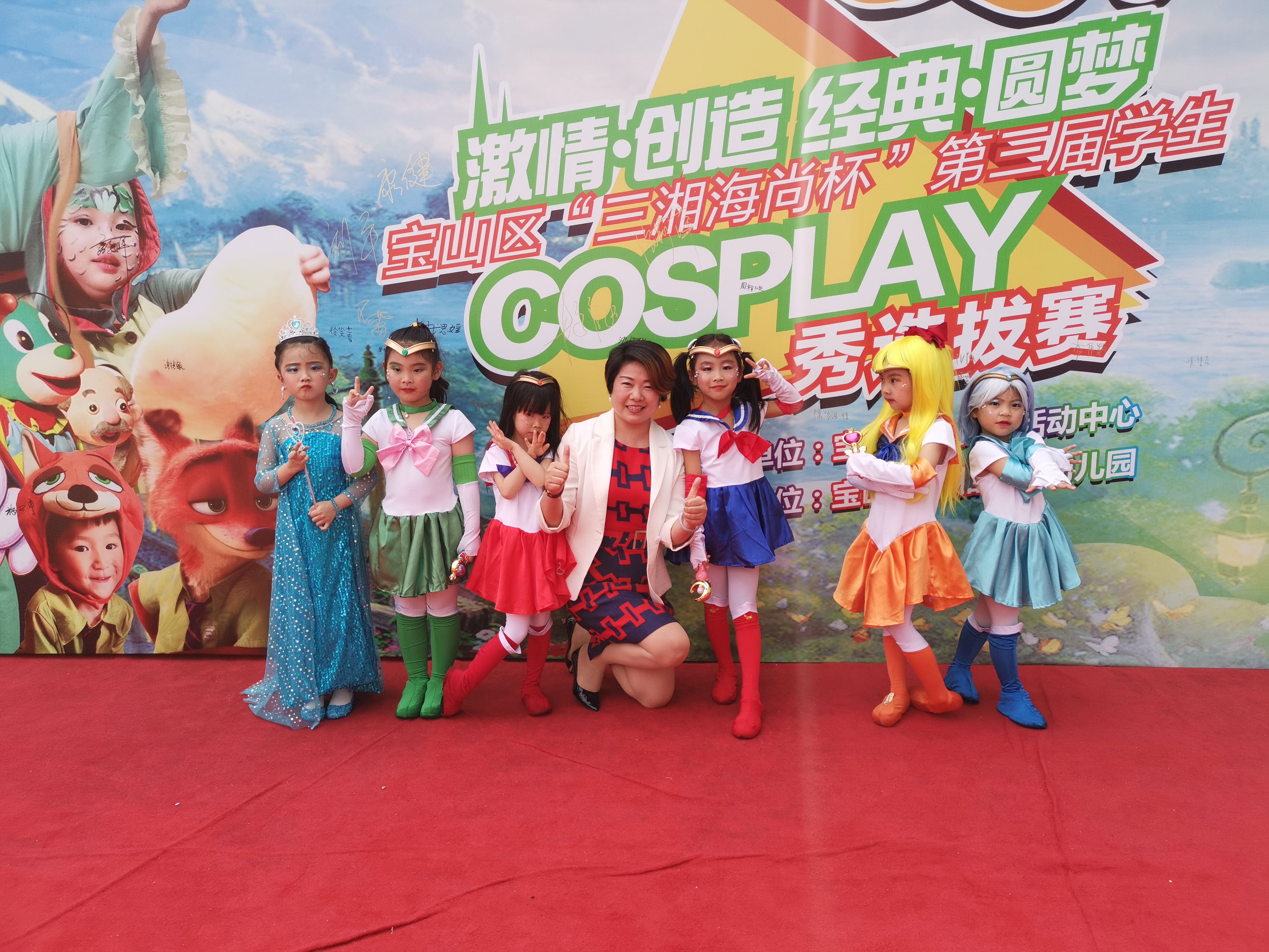 近日,我园多名幼儿在老师和家长的带领和陪同下参加了宝山区“三湘海尚”杯第三届学生cosplay秀选拔赛活动。Cosplay是一项青少年颇为喜爱的文化,在这里我们可以和小伙伴一起交流二次元文化,只要是有cosplayer在的地方, 这一领域便绝对就是当今青少年流行文化的主流。