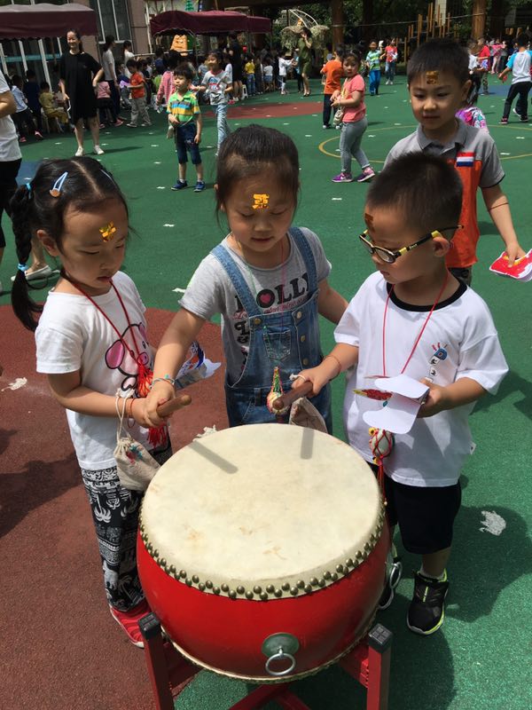 天朗气清,夏韵悠长,又到了粽叶飘香的季节,在这传统的节日里,高境七幼开展了“片片粽叶情,快乐过端午”游园活动。小朋友们先集中在操场,共同朗诵了端午诗歌,初步了解了端午的风俗习惯。随着欢快的音乐响起,孩子们分散着进行了各种端午习俗的游戏。小班的弟弟妹妹在哥哥姐姐的带领下划龙舟、舞龙、贴王字、装饰香袋、系五彩线、洗粽叶等,高兴地不亦乐乎。操场上,热闹非凡,每个场地都有三五成群的小朋友驻足观看、游戏。在一个多小时的游园后,孩子们带着手里装饰好的鸭蛋、额头上的王字、手腕上五彩的细线,满载而归,收获多多。