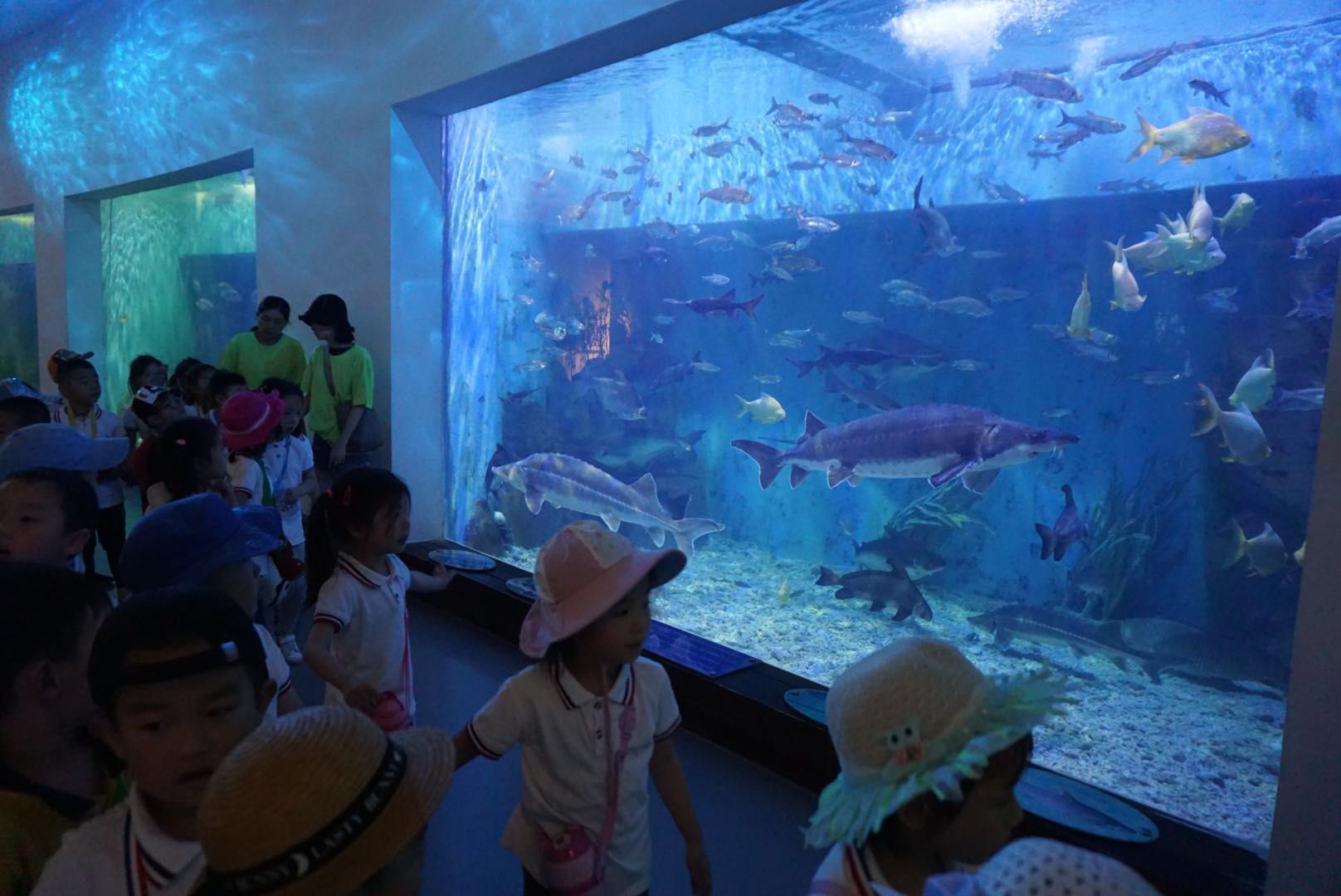 接着又来到了水族世界,水族世界的鱼类可真多啊!有珍贵的中华鲟,有硕大的海龟,还有鳊鱼等长江里的生物,孩子们在水族缸前驻足不前。