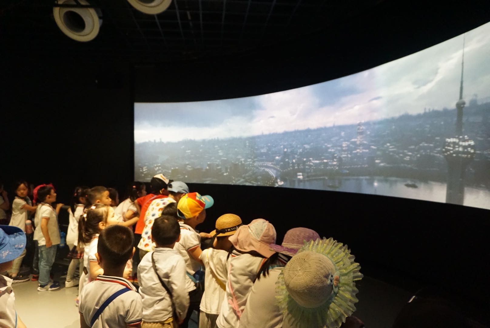 当然,科技馆里少不了四维动感电影。坐在120度的立体屏幕前,欣赏着海洋的演变过程,体验着下雨、坠落、刮风等动态,孩子们都有种身临其境的感受。
