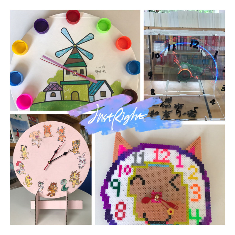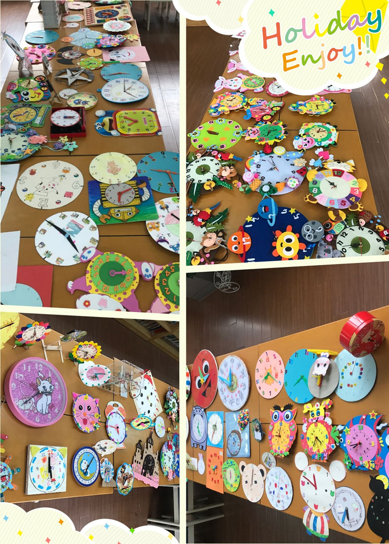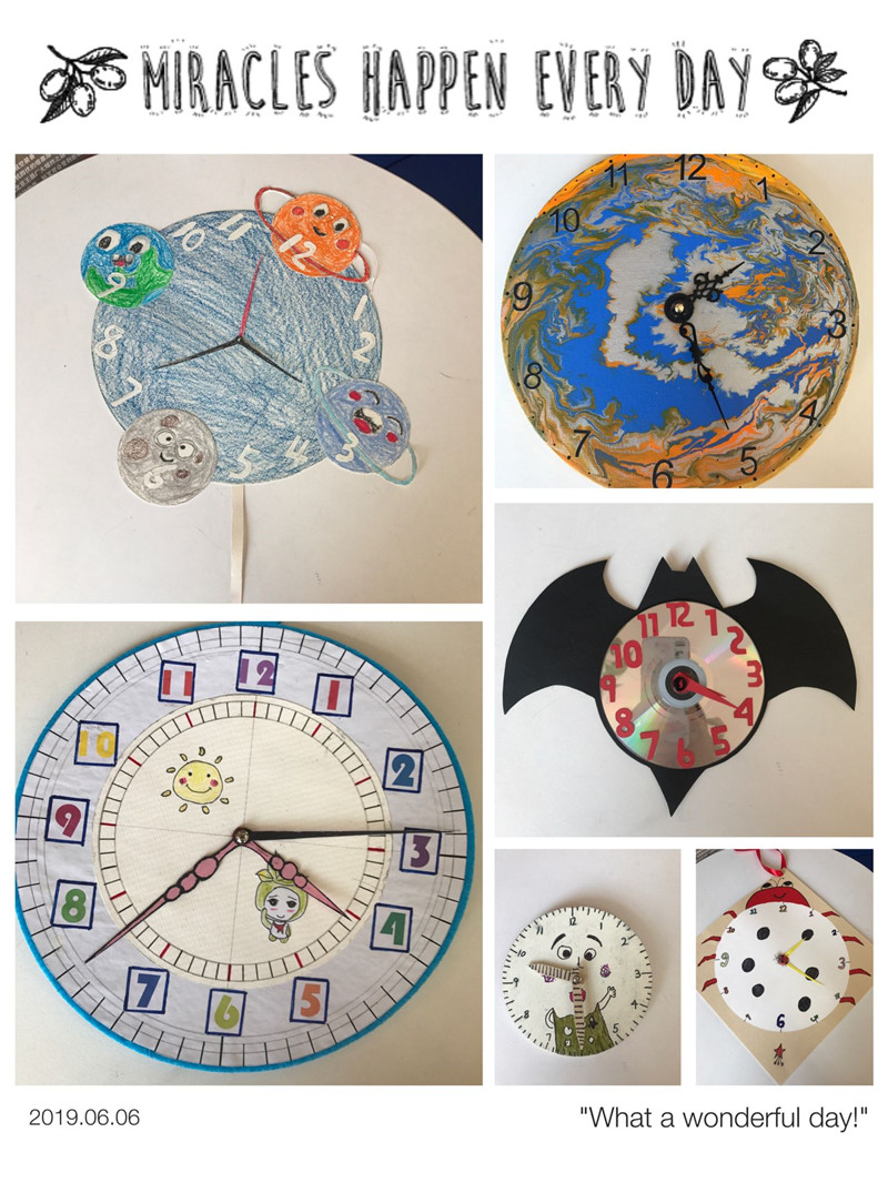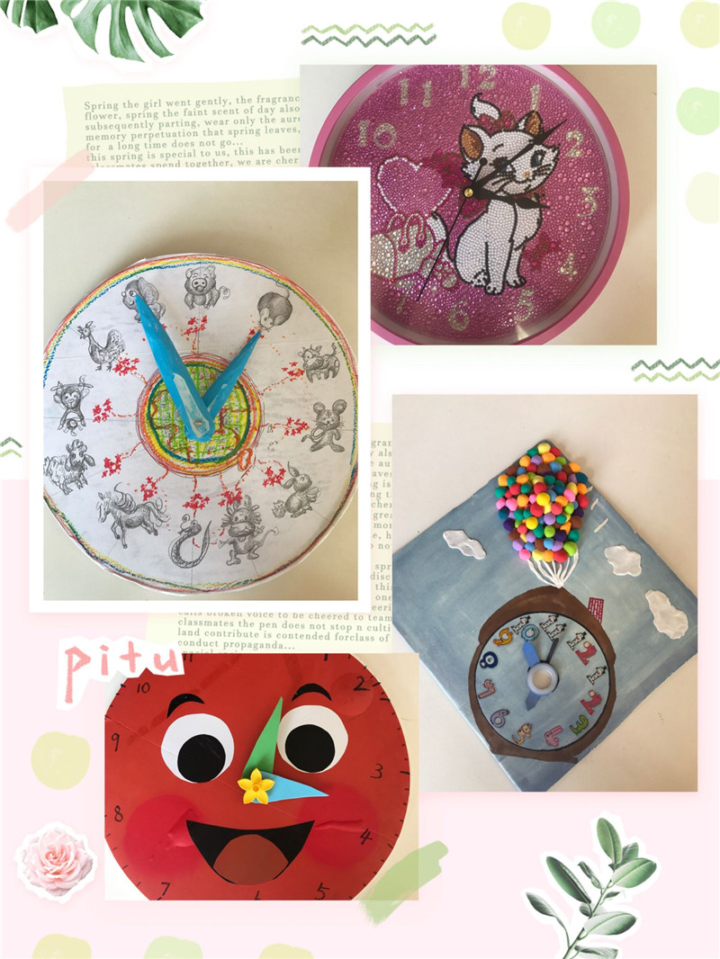 活动要求:能用铅画纸等材料制作造型新颖的钟面。