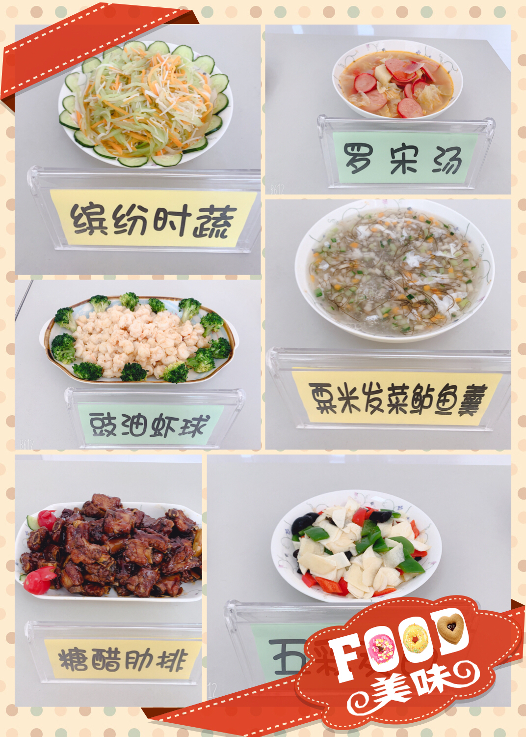 活动中,家长与营养员们个个精神饱满,精心准备食材。膳食组家长组成家长组,营养员组成专业组,两组分别烹饪“两菜一汤”进行交流。活动两个小时里两组需要完成原材料的清洗、切配、烹饪、摆盘这四个环节,在紧张而又愉悦的氛围中,大家分工合作,井然有序的完成了所有菜品。家长组烹制了豉油虾球、五彩茭白、罗宋汤,而专业组烹制了糖醋肋排、缤纷时蔬、粟米发菜鲈鱼羹。最后大家共同品尝了所有菜品,每个人都笑容满面,每道菜都色香味俱佳,纷纷为主厨竖起了大拇指。
