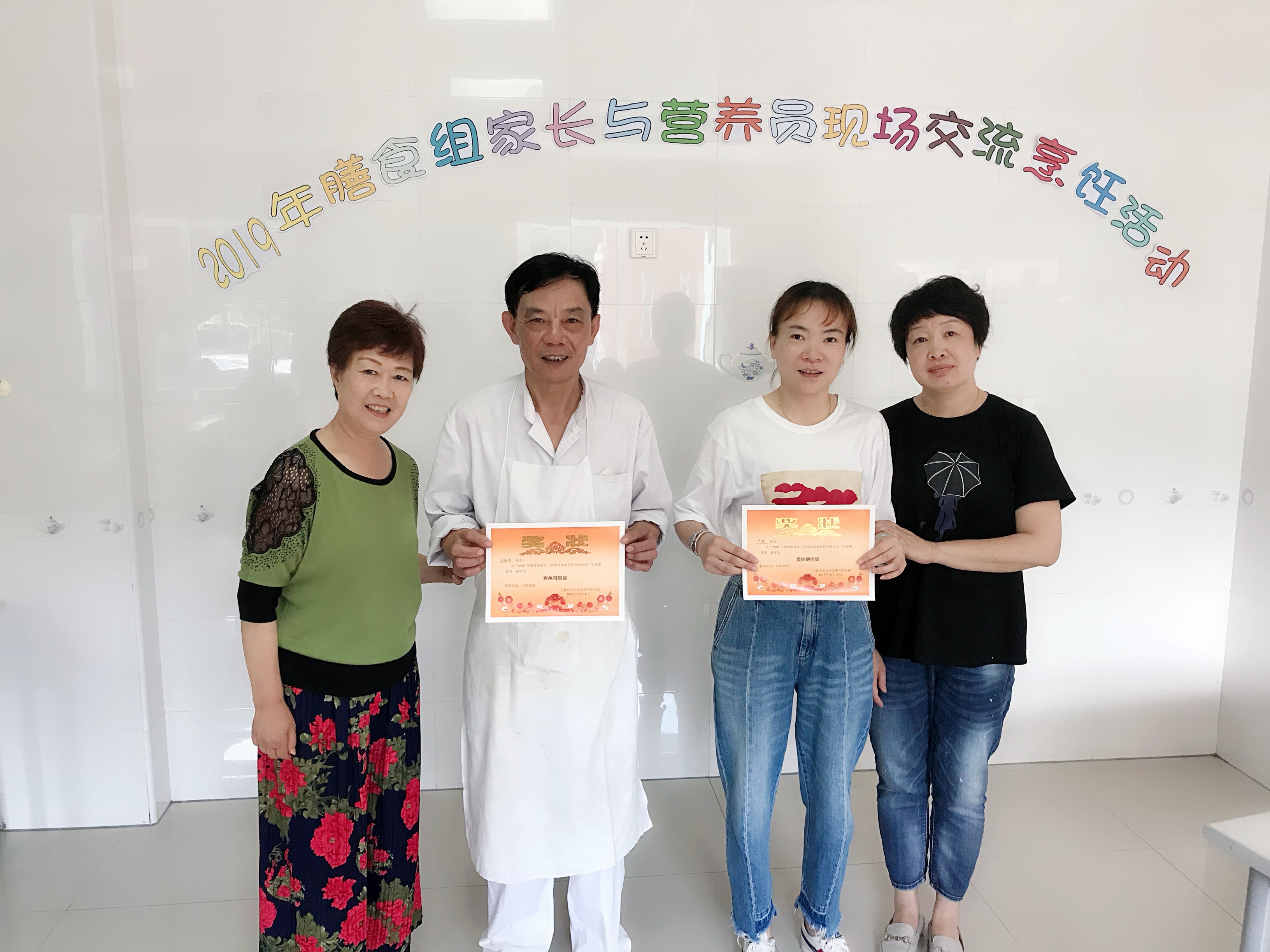 活动尾声,园领导和家长代表分别为两组中的主厨颁发了奖状,激励营养员在日后工作中能更好的烹饪膳食,同时感谢家长们对活动的付出和支持,特别是大班即将毕业的膳食组家长,感激他们三年来的一路支持和陪伴。