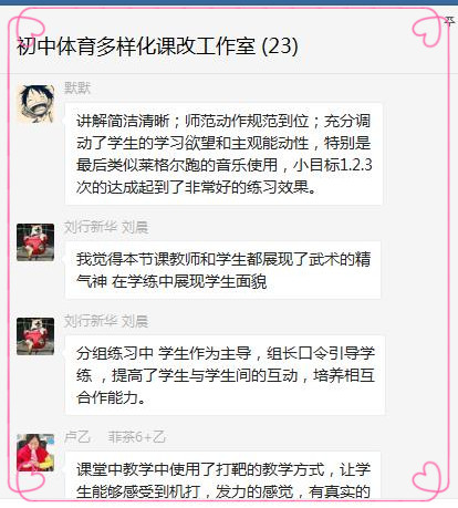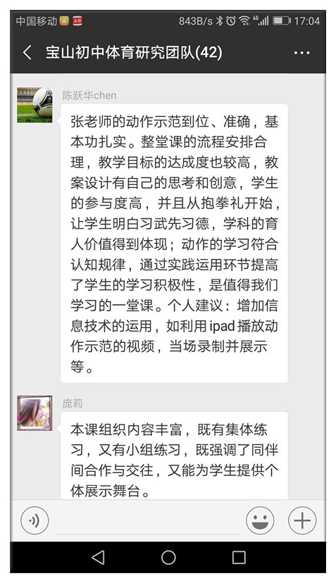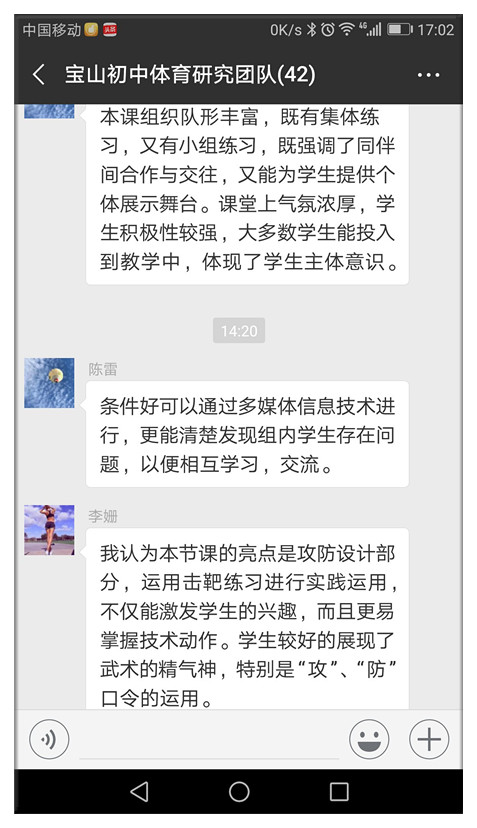活动由体育学科首席教师姚伟良老师主持,为了确保本次网络研讨活动的顺利进行,事先由张家惠老师备好六年级武术《少年拳2》,然后全程课堂实录,再把上课和课后反思的视频上传到网络上,整套教案事先发在微信工作群里。