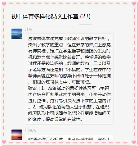 为了不出家门就能直接参与区里的体育教研活动,既省时又省力,而且提高教研活动的针对性和实效性。2018年6月7日下午一点至三点,宝山区初中体育研究团队和初中体育多样化课改工作室成员第一次尝试在网络上中举行了初中体育多样化教学研讨活动。
