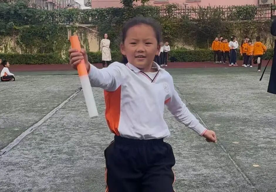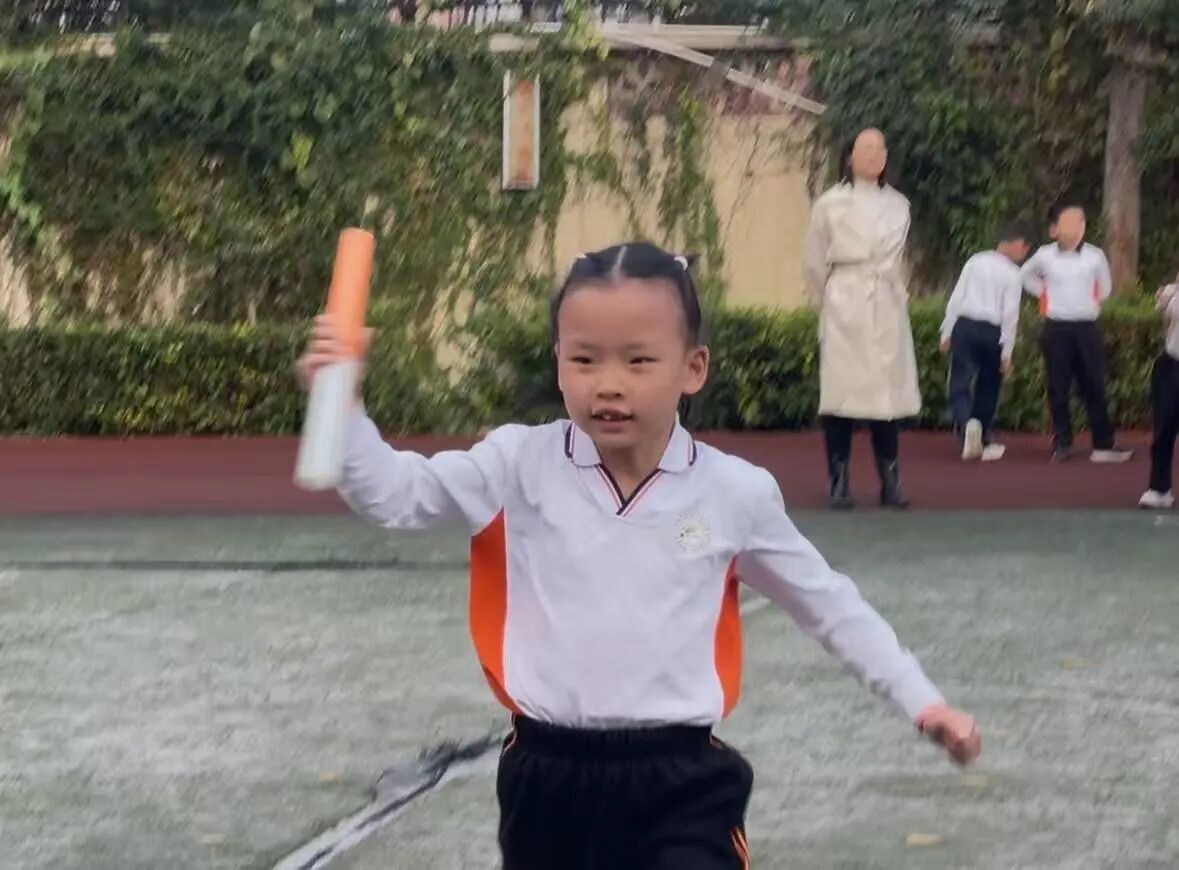 一二年级的迎面接力赛率先拉开帷幕。赛前,老师们细致讲解规则,指导接棒与起跑,小选手们满怀期待。哨声一响,第一棒选手奋力冲刺,交接棒时小心翼翼,跑过终点后兴奋呐喊……虽有小萌娃在交接棒时短暂停顿,但在伙伴的鼓励下迅速调整,在奔跑中初误协作的意义。