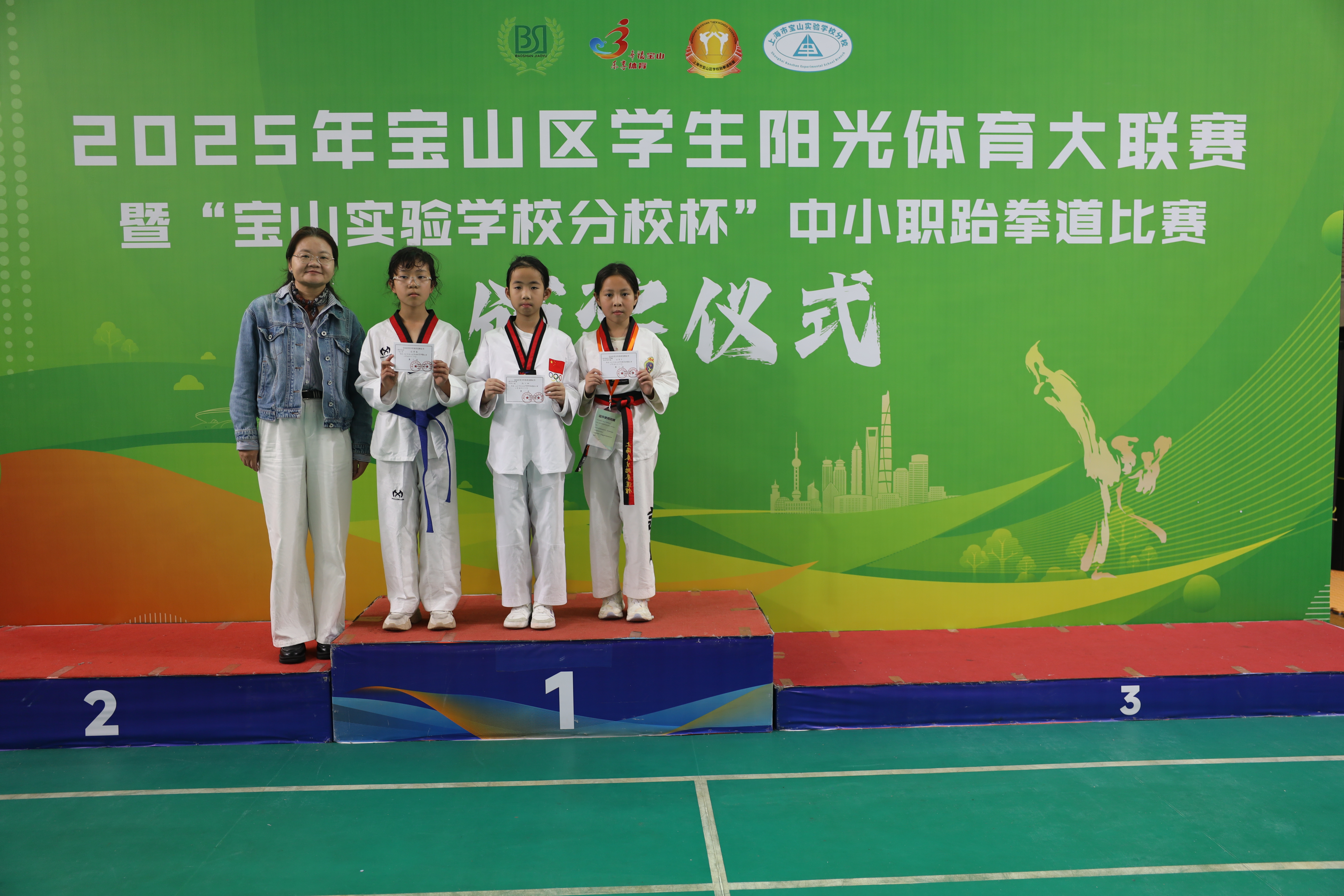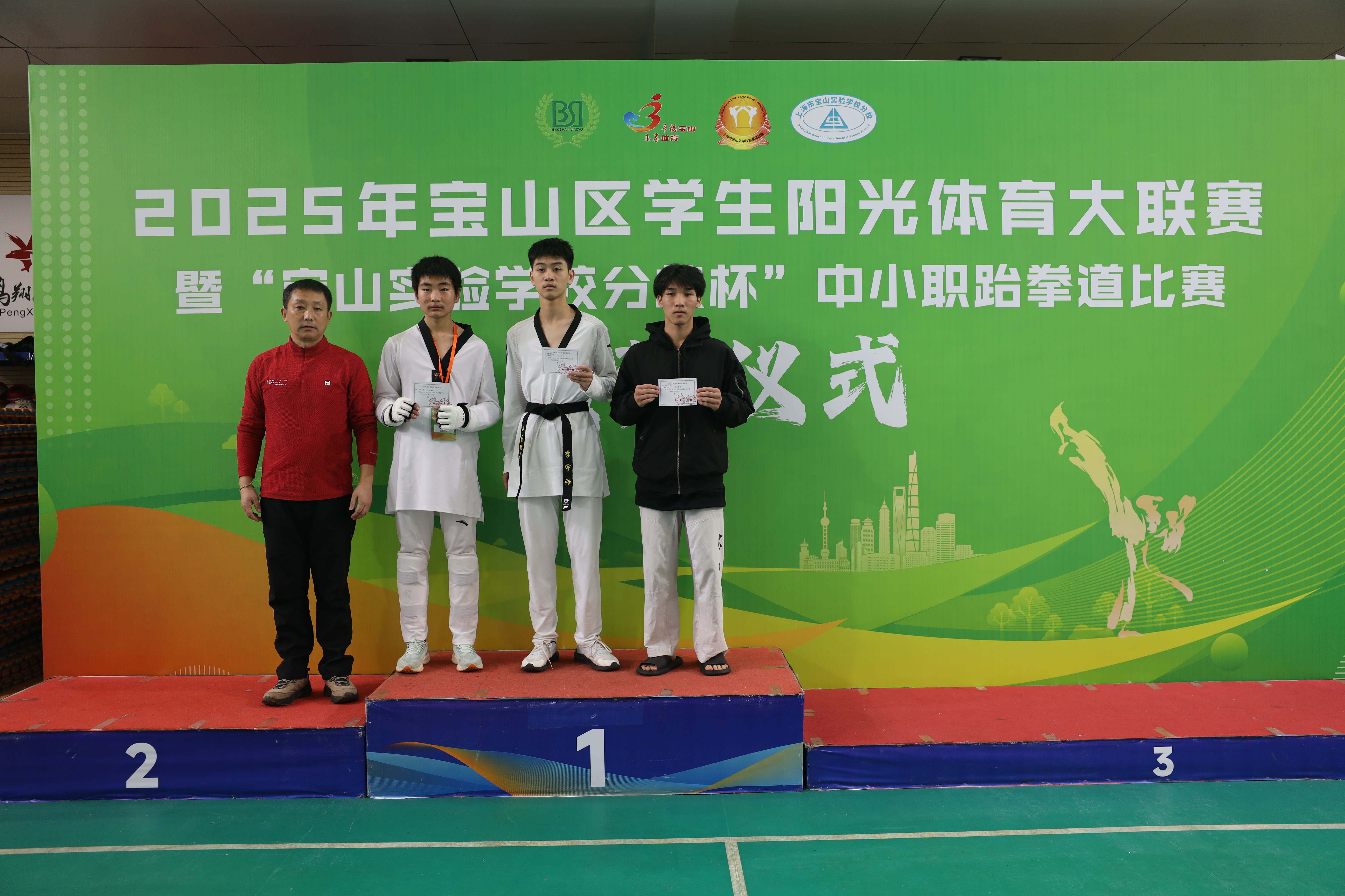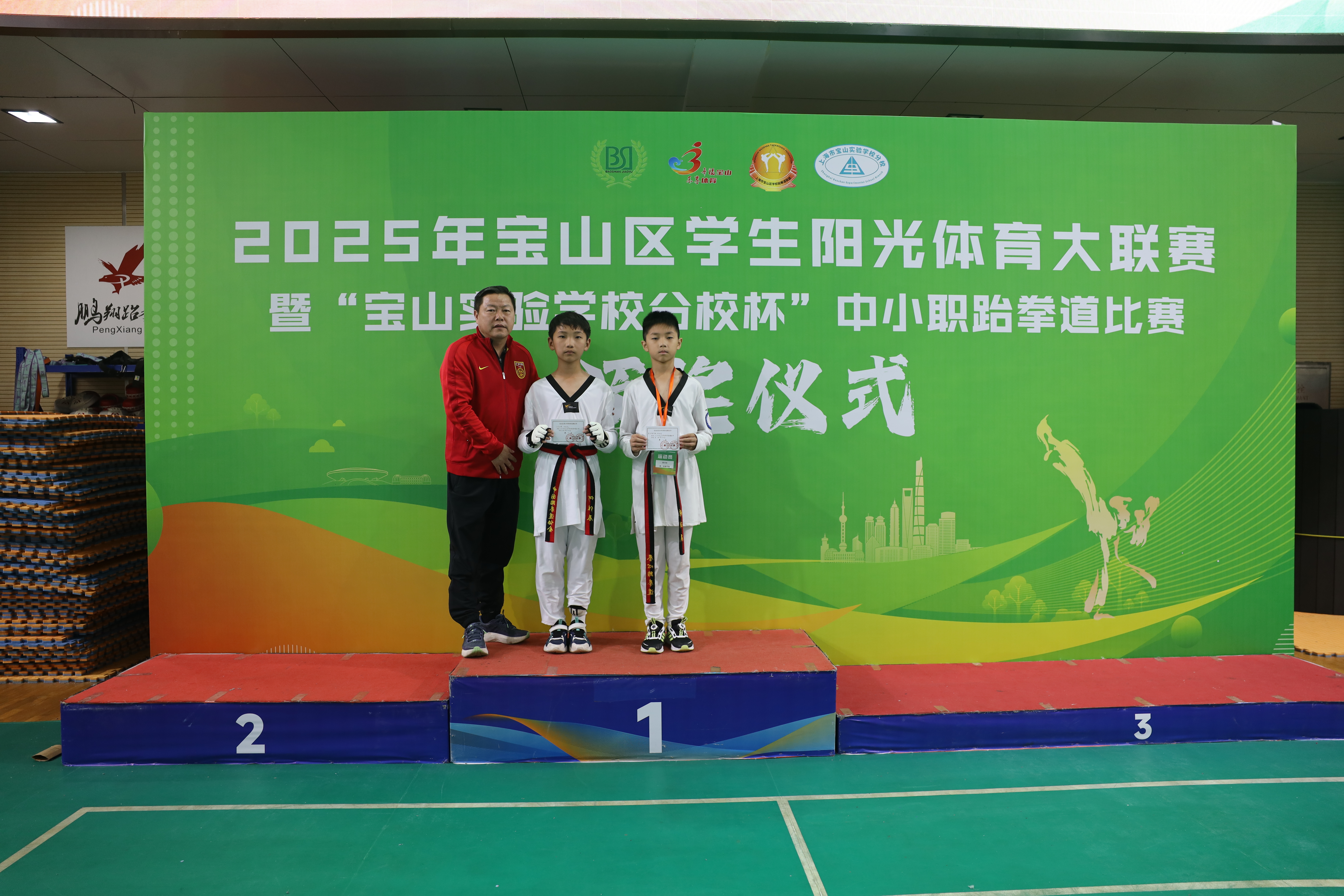 2025年11月1日,由宝山区教育局、宝山区体育局共同主办,宝山区学校跆拳道联盟、宝山实验学校分校联合承办的2025年宝山区阳光体育大联赛暨“宝山实验学校分校杯”中小学生跆拳道比赛,在上海市宝山实验学校分校顺利举行。本次赛事共吸引全区31所中小学的114名运动员踊跃参与。